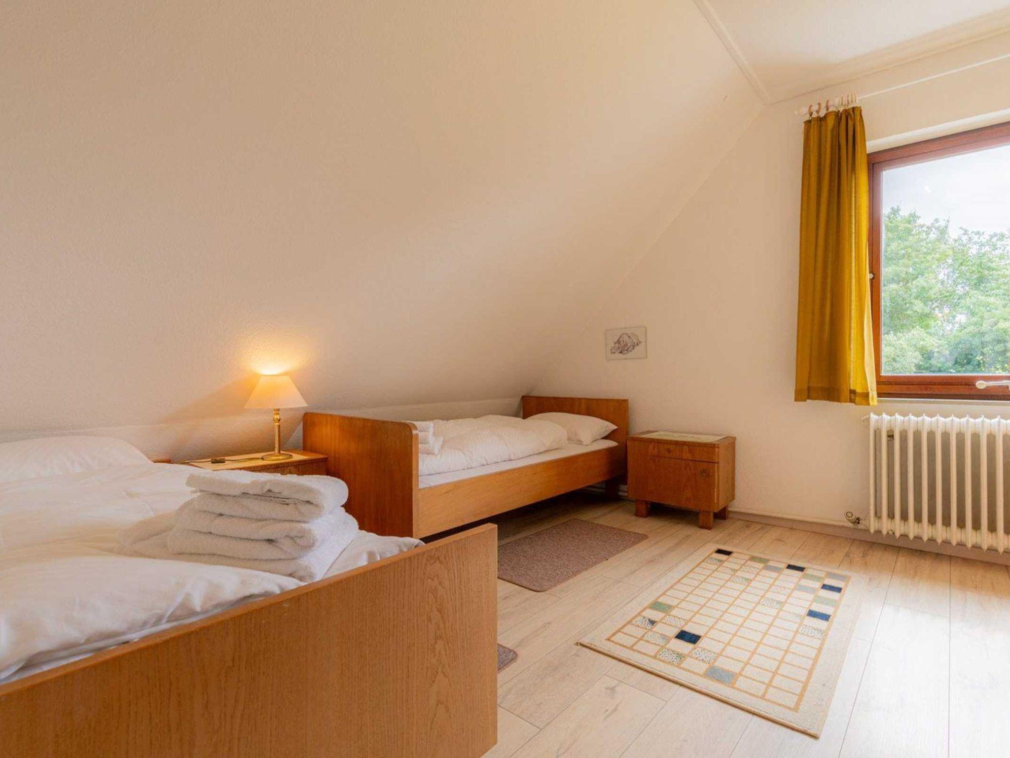 2. Schlafzimmer mit 2 Einzelbetten (1x 90x190cm, 1x 90x180cm), Kleiderschrank, kleinem Tisch und Stuhl für Kinder.