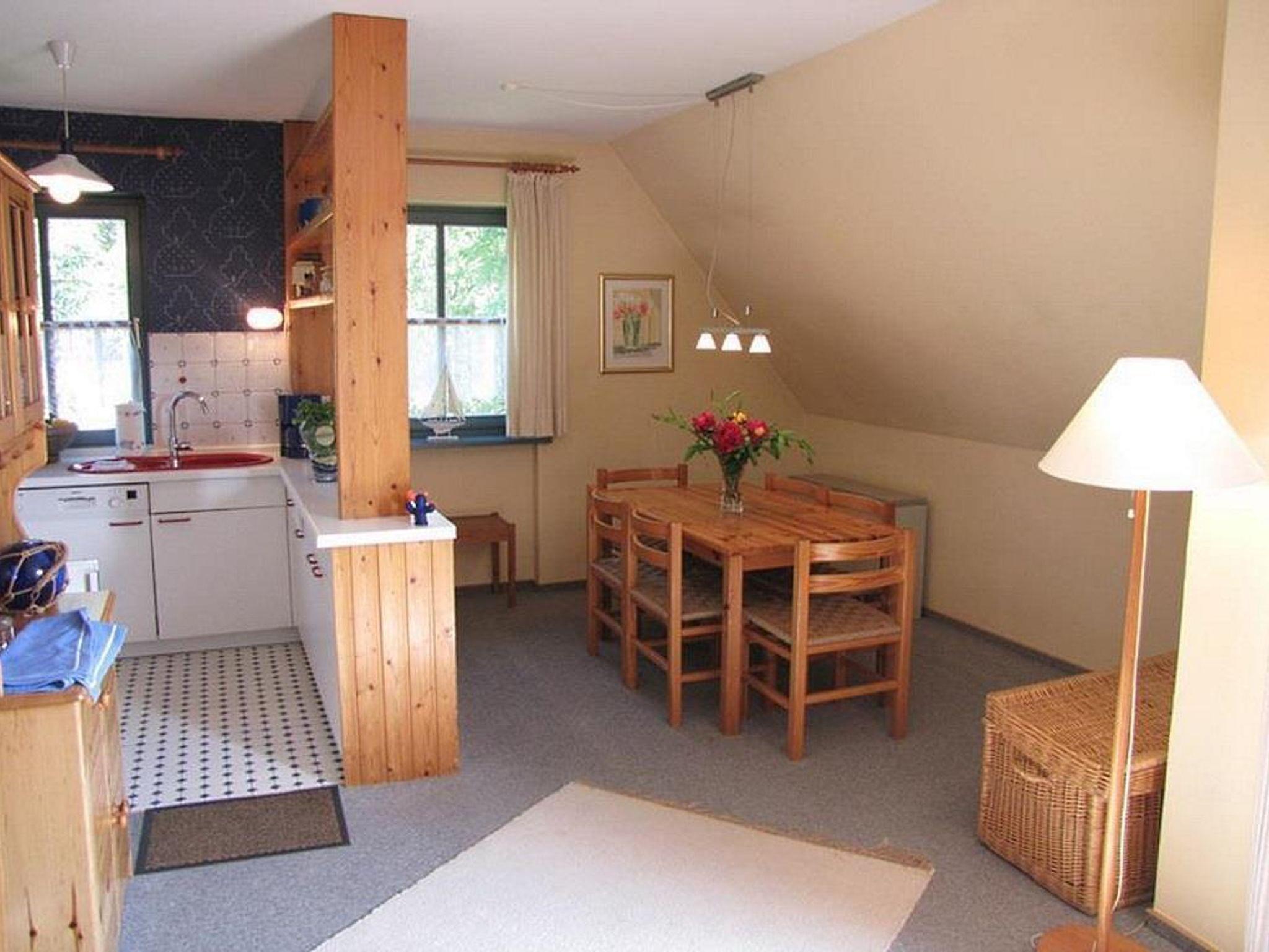 Die Wohnung Anka im Obergeschoß verteilt sich über 2 Etagen auf 85qm. Im Obergeschoß finden Sie einen Wohnschlafraum mit Schlafcouch, Sitz- und Essecke, dänischem Kaminofen, sowie eine sonnige Fensterfront mit Ausgang zum Balkon vor. Die Ferienwohnung ist im skandinavischen Stil mit einer offenen Küche, einem Tresenbereich, Insektenschutzfenstern, einem Duschbad, sowie einem separatem WC ausgestattet. Ein Schlafzimmer mit einem Doppelbett lädt zum Schlummern ein. Ein weiterer Schlafraum mit 3 Einzelbetten und Kindergitter (ein Kinderbett wäre hier zusätzlich aufstellbar), einem Couchtisch und zwei Sesseln ist über die Wendeltreppe im Dachgeschoß erreichbar. Bettwäsche und Handtücher sind auf Anfrage mietbar.
