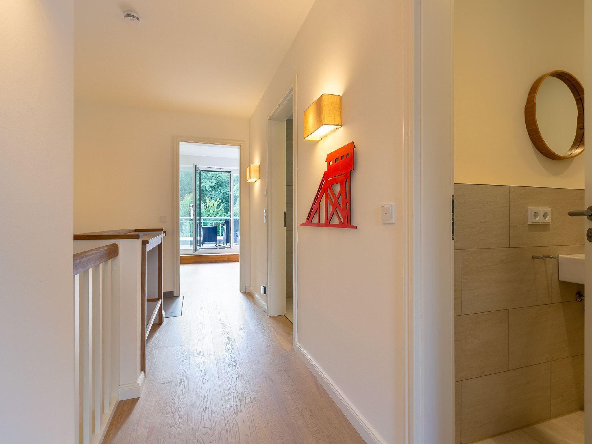 2. Badezimmer (Vollbad) mit Duschwanne, WC, Handtuchwärmer und Föhn. Separates WC im OG.