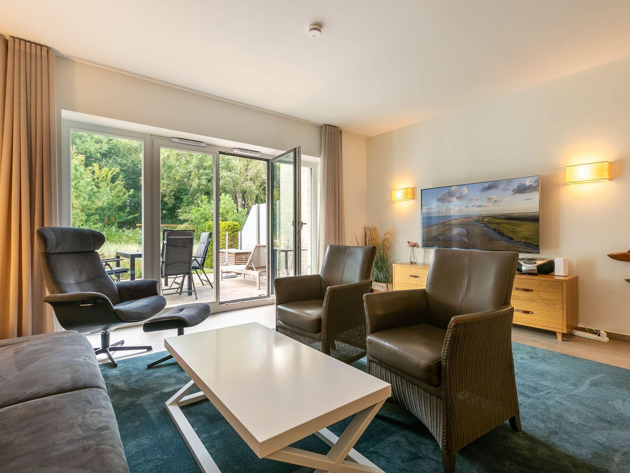 Exklusiver Mittelhausteil ?2o ? Residenz am Wald? in der Ferienanlage ?Aalernhüs Residenzen? mit 3 Zimmern und ca. 127 m² auf 2 Ebenen (EG, OG) für bis zu 6 Personen (Wohlfühlbelegung: max. 4 Erwachsene). Ruhige Lage im Ortsteil Bad in St. Peter-Ording. Das Domizil liegt auf dem Anwesen einer 5-Sterne-Hotelanlage, deren Wellnessbereich mit Saunen, Innen- und Außenschwimmbädern, Fitnessraum und Tennisanlage gegen Gebühr genutzt werden kann. Hunde sind willkommen.