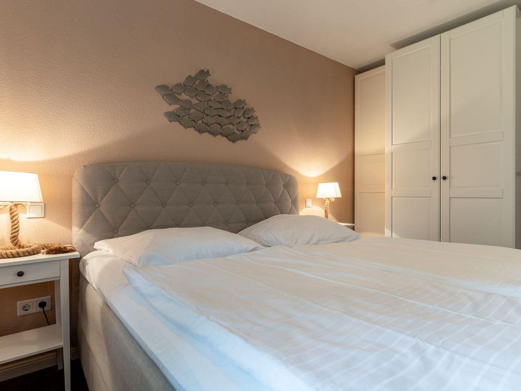 Erholung finden Sie auch im anliegenden Schlafzimmer durch das große und gemütliche Boxspringbett. Ihre Kleidung findet ihren Platz in dem großzügigen Kleiderschrank.