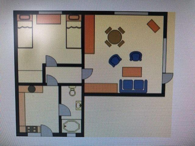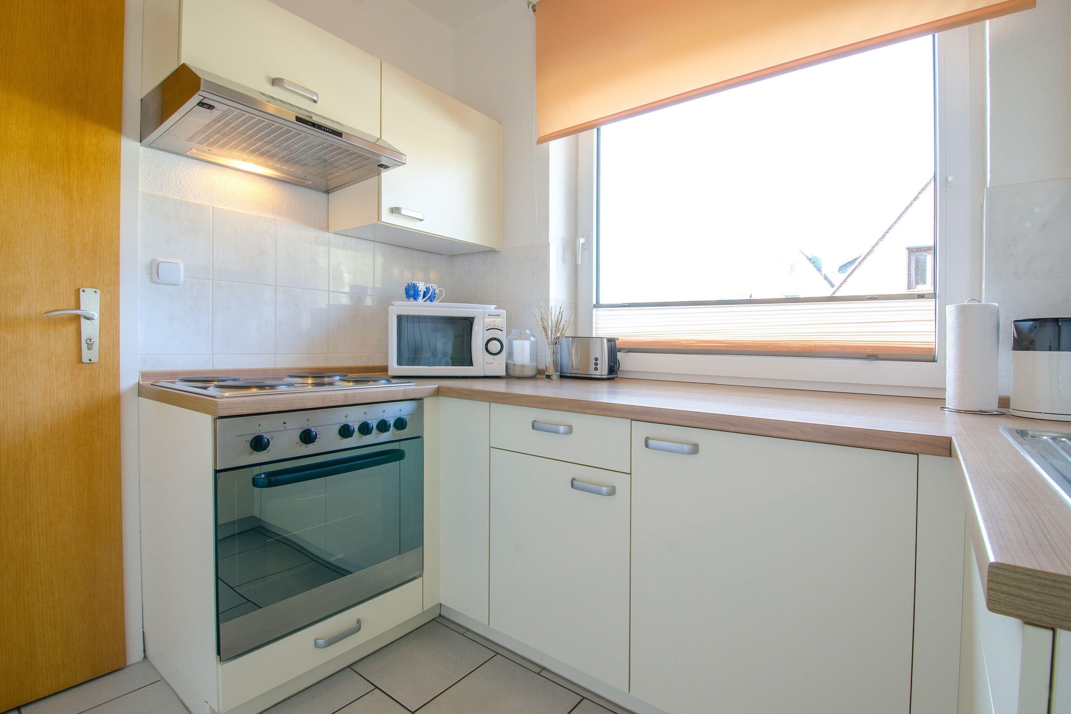 Schöne 2-Zimmer-Wohnung im Erdgeschoss, 1 Wohnraum mit Essecke, 1 Schlafraum mit 2 Einzelbetten, Küche und Duschbad, Insektenschutz