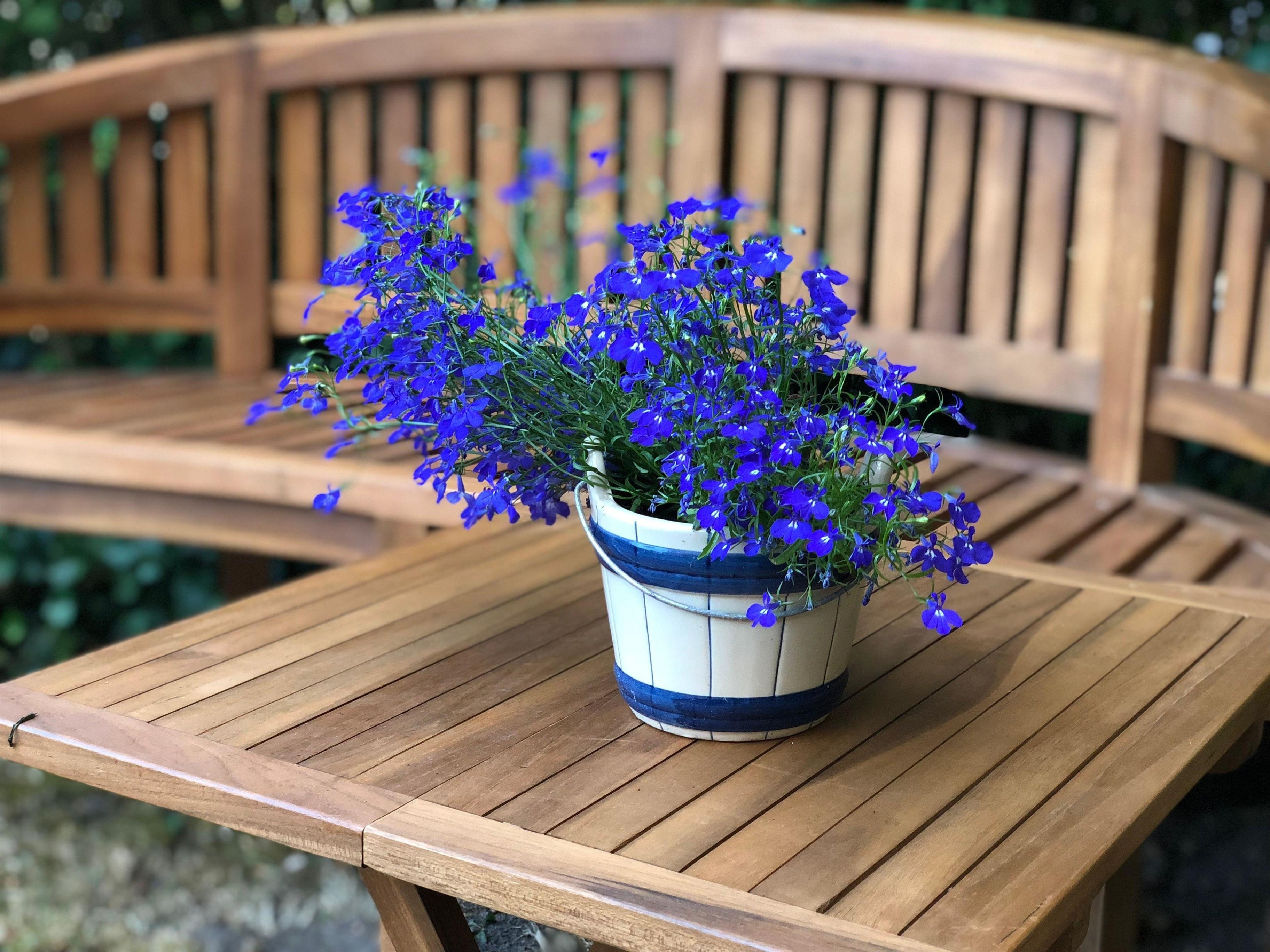 Sitzgelegenheit mit Tisch für zwei Personen.