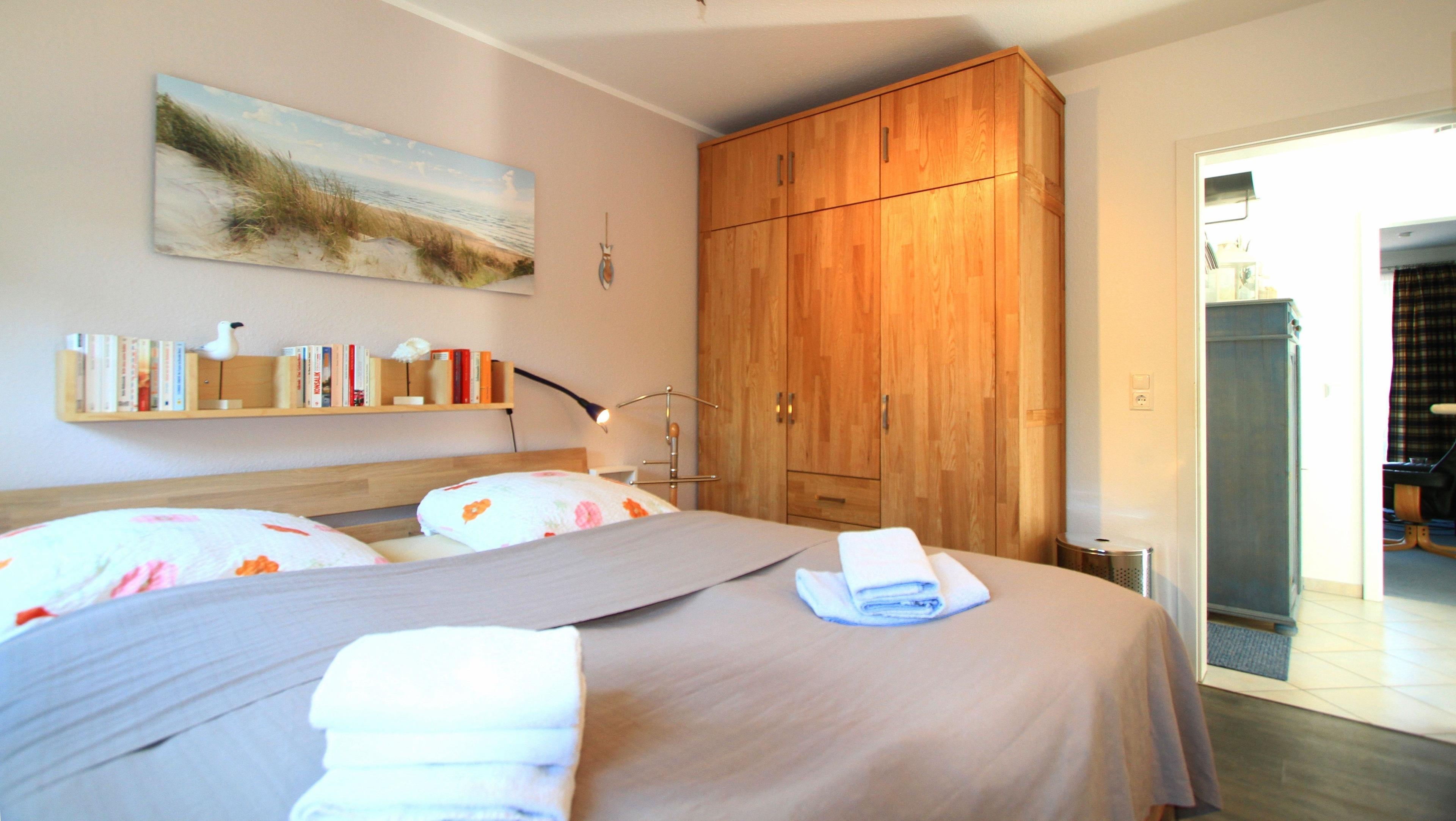 Im separaten Elternschlafzimmer befindet sich ein komfortables Doppelbett. Im Kleiderschrank haben Sie genügend Platz für Ihre Kleidung.