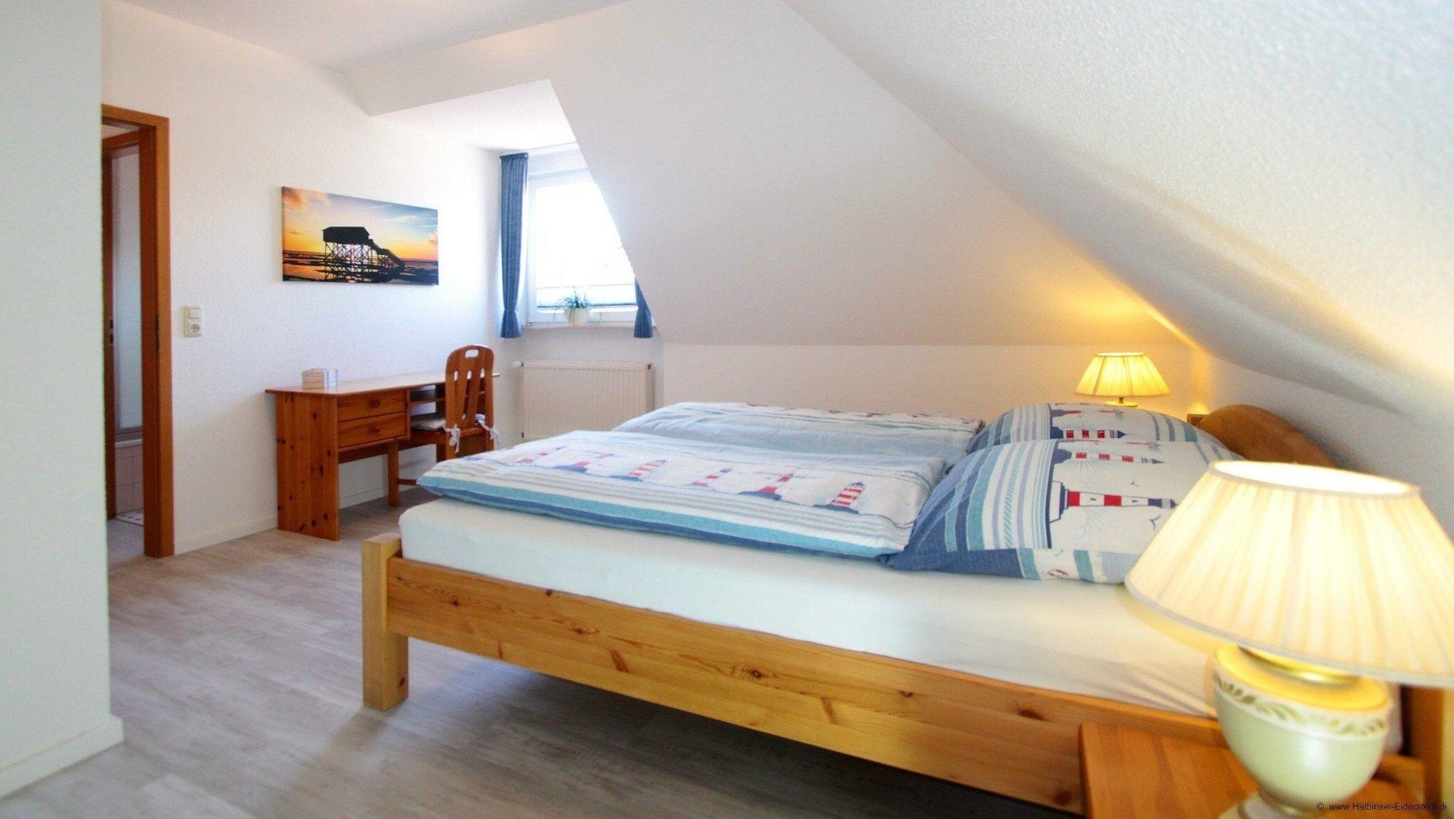 Das Elternschlafzimmer wartet mit einem großen und bequemen Doppelbett auf Sie. Im zweiten Schlafzimmer im Dachgeschoss stehen zwei komfortable Einzelbetten, diesen erreichen Sie über eine gewendelte Treppe. Bei uns werden Sie bestimmt gut schlafen!