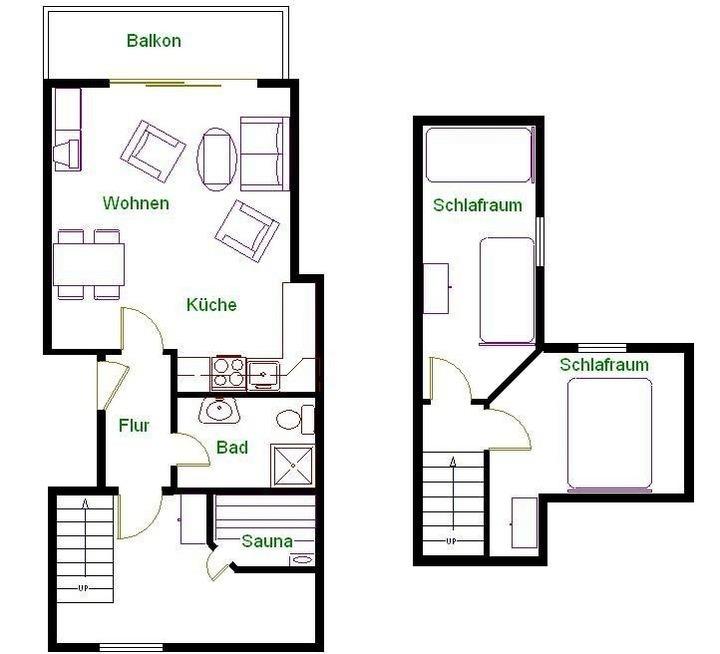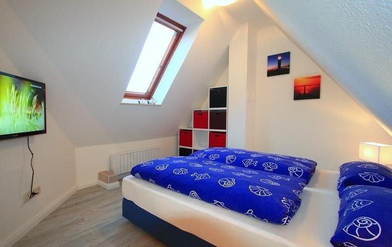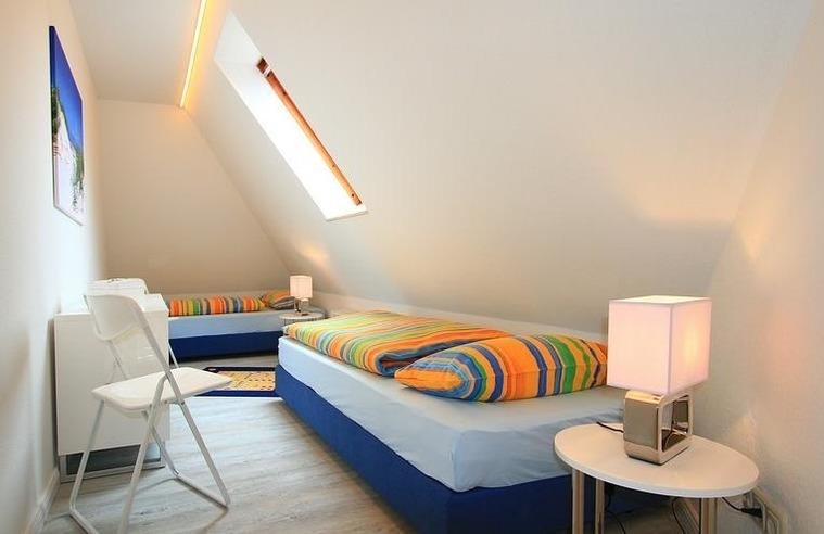 Zudem stehen Ihnen zwei separate Schlafzimmer zur Verfügung. Dachschrägen verleihen beiden Schlafzimmern Behaglichkeit. Unsere Betten sind gepflegt und hochwertig, sodass Sie bestimmt erholsamen Schlaf finden werden.