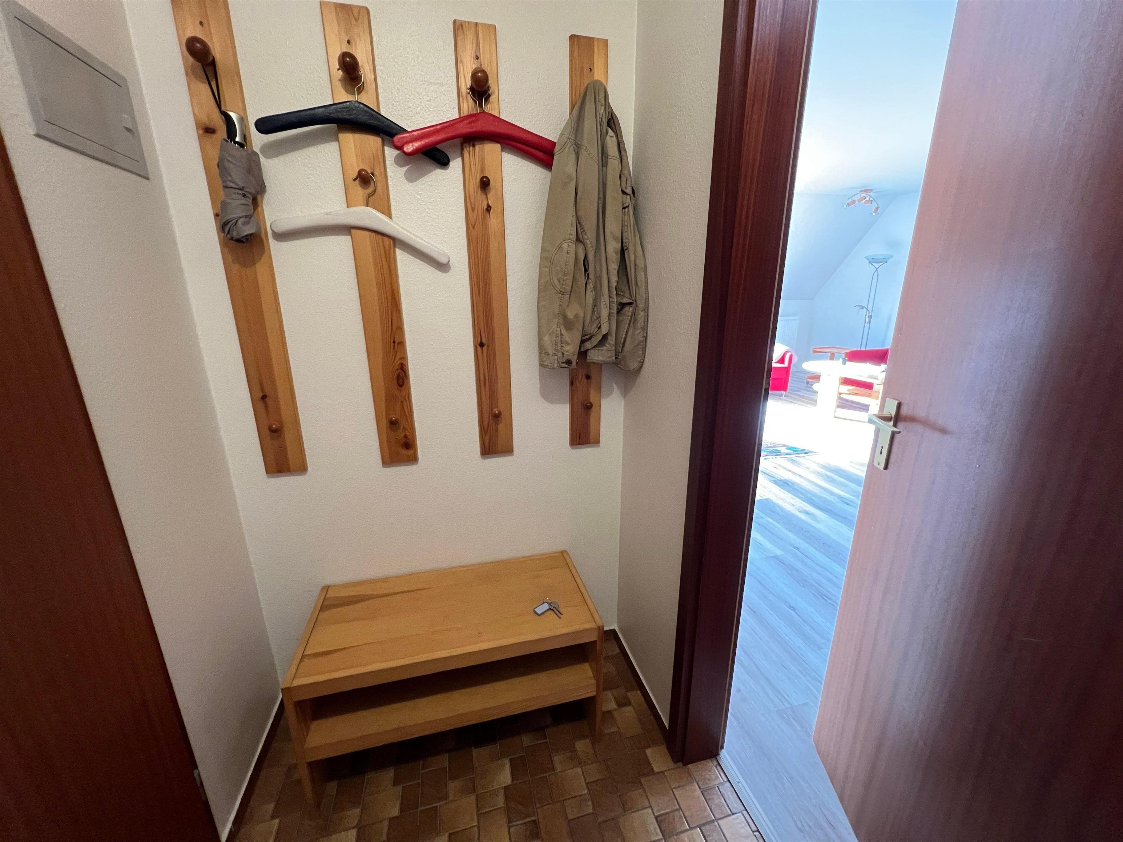 Die Ferienwohnung liegt im 1. OG und Dachgeschoss einer kleinen Anlage zurückgesetzt in zweiter Reihe, also ruhig und weit ab von der Straße.