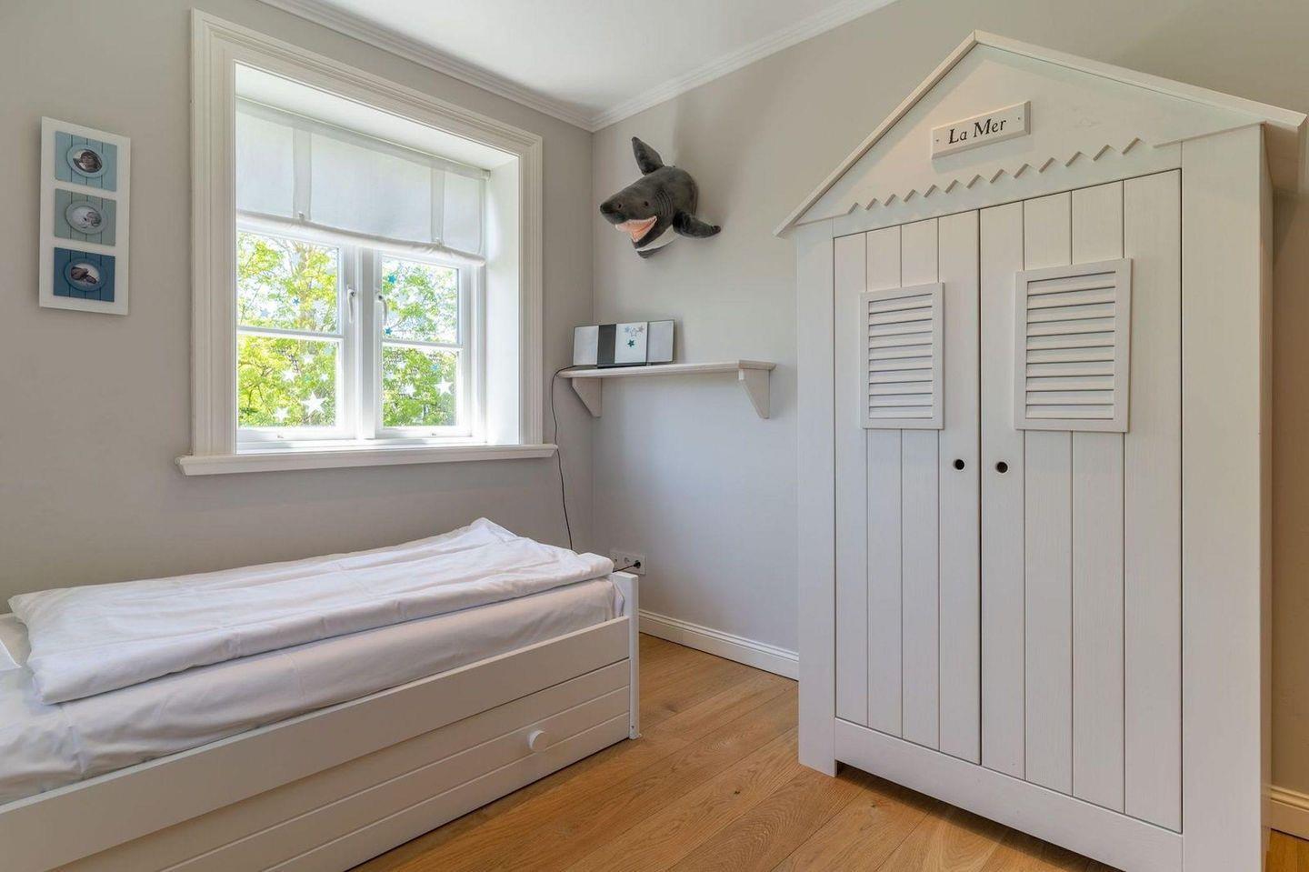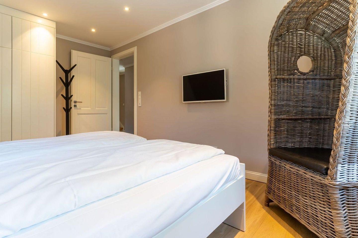 Die luxuriöse Haushälfte unter Reet verfügt über ca. 105 m² Wohnfläche und bietet Platz für 4 Personen. Im Erdgeschoss befindet sich der lichtdurchflutete Wohnraum mit TV, einer offenen Küche sowie einem stilvollen Essbereich. Die Wohnräume sind mit exklusiven Möbeln ausgestattet.