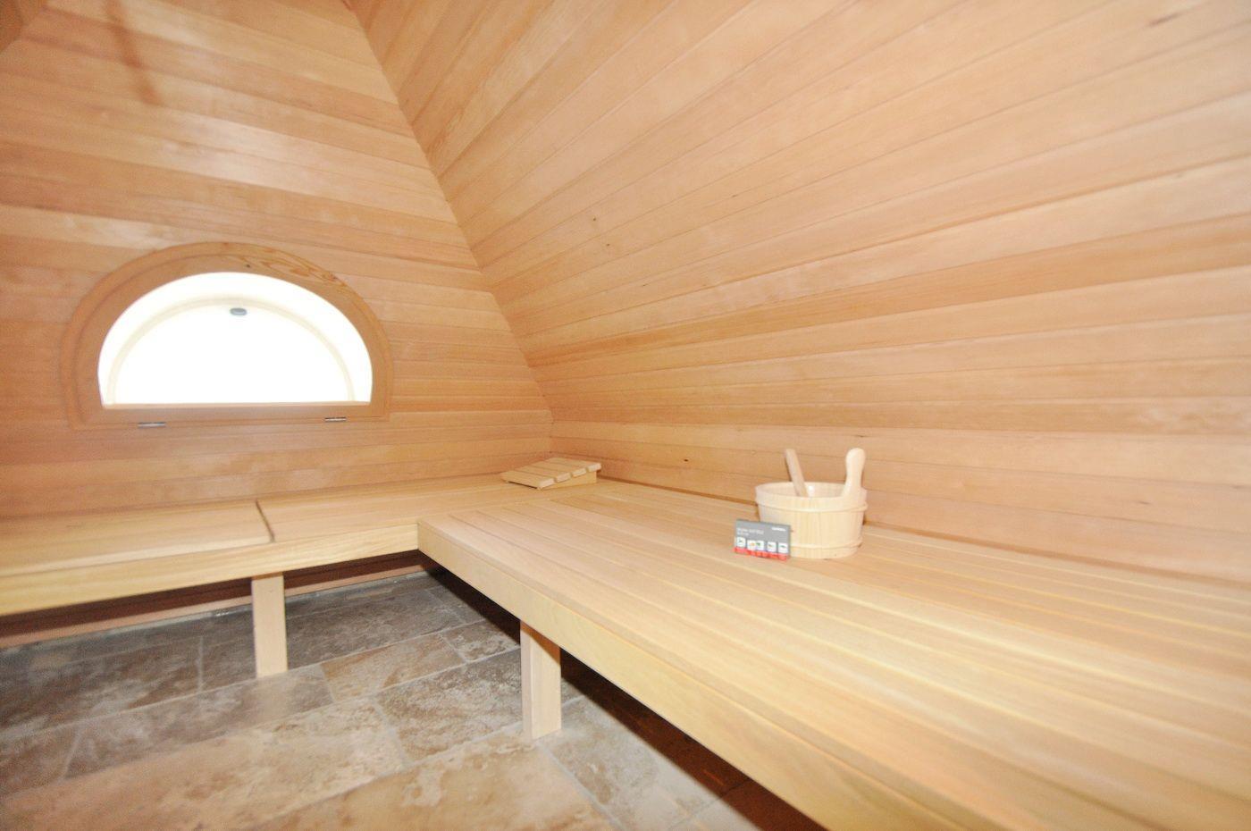 Dachgeschoss: eine Sauna, ein Arbeits- bzw. Homeoffice-Platz von dem man einen herrlichen Blick auf das Meer hat