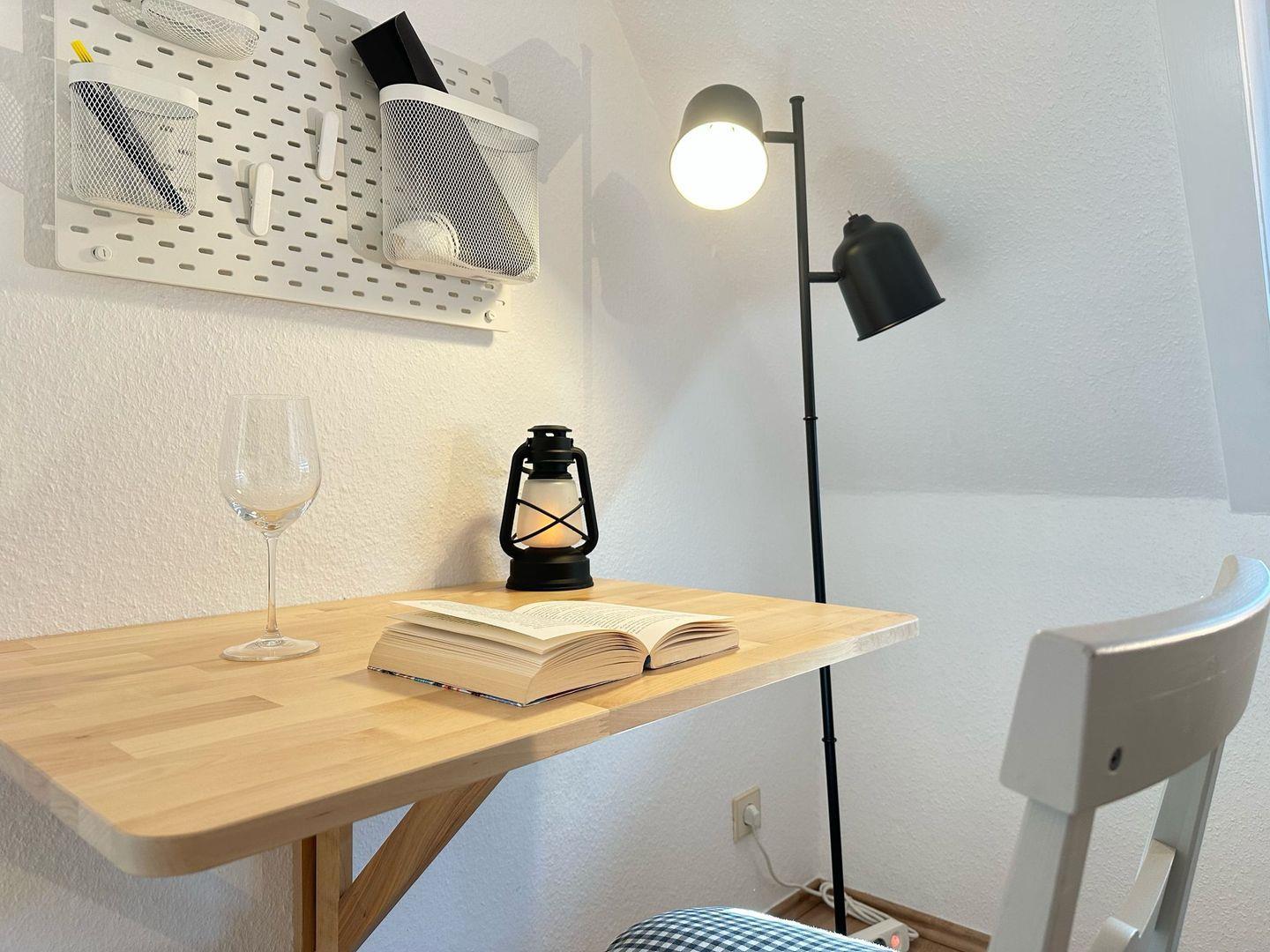 Zusätzlich haben die Gäste die Möglichkeit, einer der Schlafzimmer als Workstation zu nutzen. Ein praktischer Klappschreibtisch sowie ein Glasfaseranschluss bieten ideale Voraussetzungen für produktives Arbeiten in einem komfortablen Umfeld.