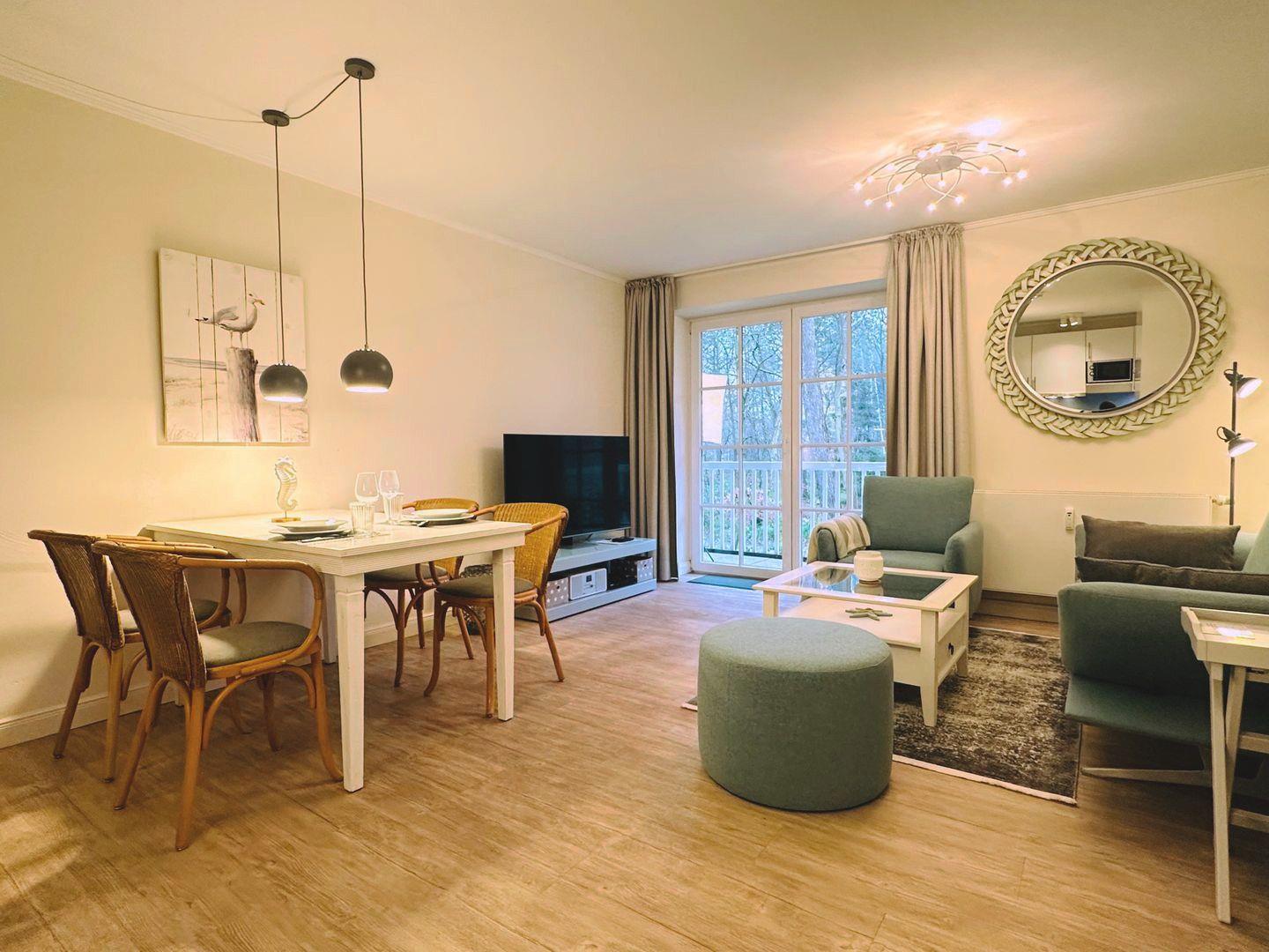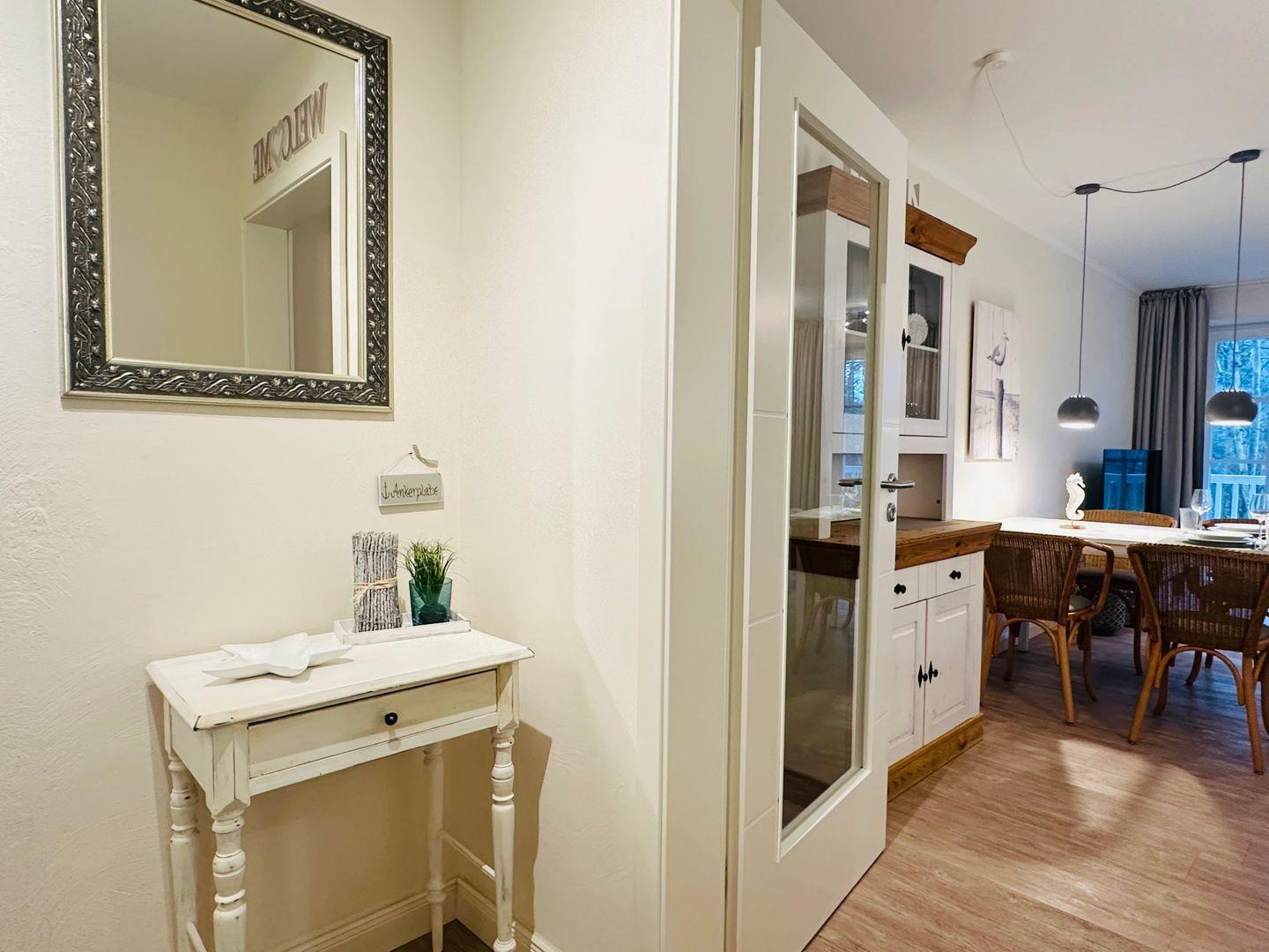Die ca. 62 qm große Ferienwohnung im Erdgeschoss ist modern und hochwertig eingerichtet. Im Wohnbereich mit Essecke können Sie nach einem langen Tag entspannen. Die offene Küche macht das Kochen zum Vergnügen. Die Wohnung verfügt über ein Duschbad, ein weiteres WC mit Waschtisch und ein Schlafzimmer.