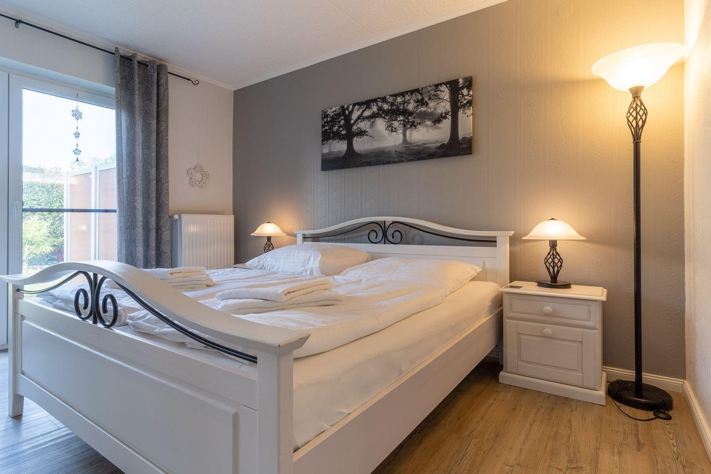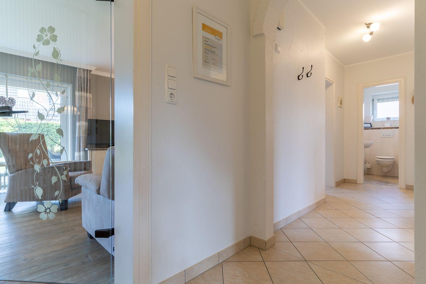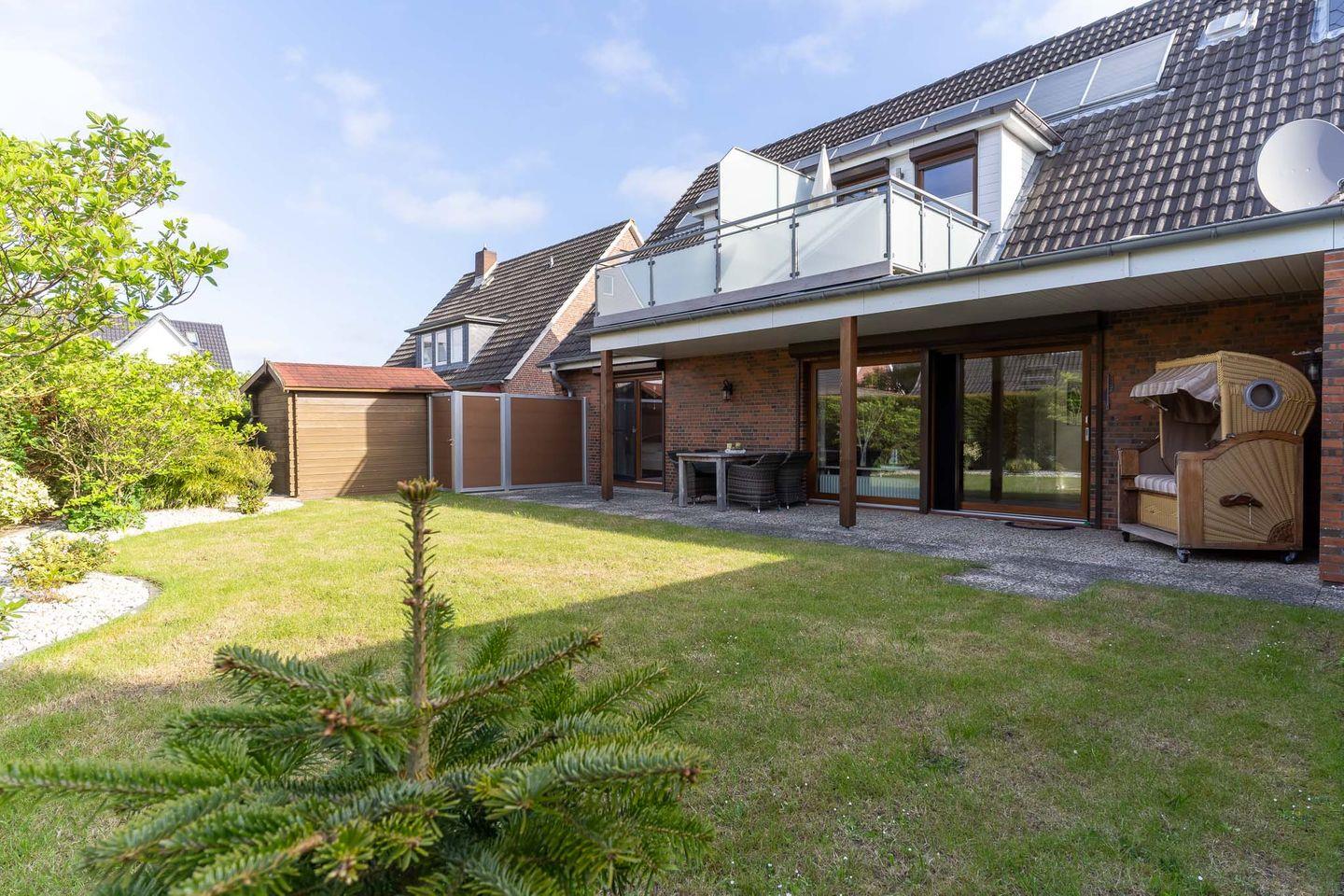 Die geräumige 90 qm Wohnung bietet 2 Schlafzimmer (1 Doppelbett, 2 Einzelbetten), eine Einbauküche mit Geschirrspüler, Backofen, Ceranfeld, Mikrowelle, Kühlschrank mit Gefrierfach, sowie ein Badezimmer mit Dusche und ein Gäste-WC. Zur Ausstattung gehören außerdem eine Südterrasse mit Gartenmöbeln und Strandkorb, HiFi-Anlage, WLAN, Parkplatz, Gemeinschaftswaschmaschine & Trockner. Bettwäsche und Handtücher sind inklusive. Nichtraucherhaus! Haustiere erlaubt. Das Laden von elektrisch betriebenen PKWs oder Hybridfahrzeugen sowie das Einstellen von Wohnwagen und Wohnmobilen mit Anschluss an den Hausstrom ist nicht zulässig.