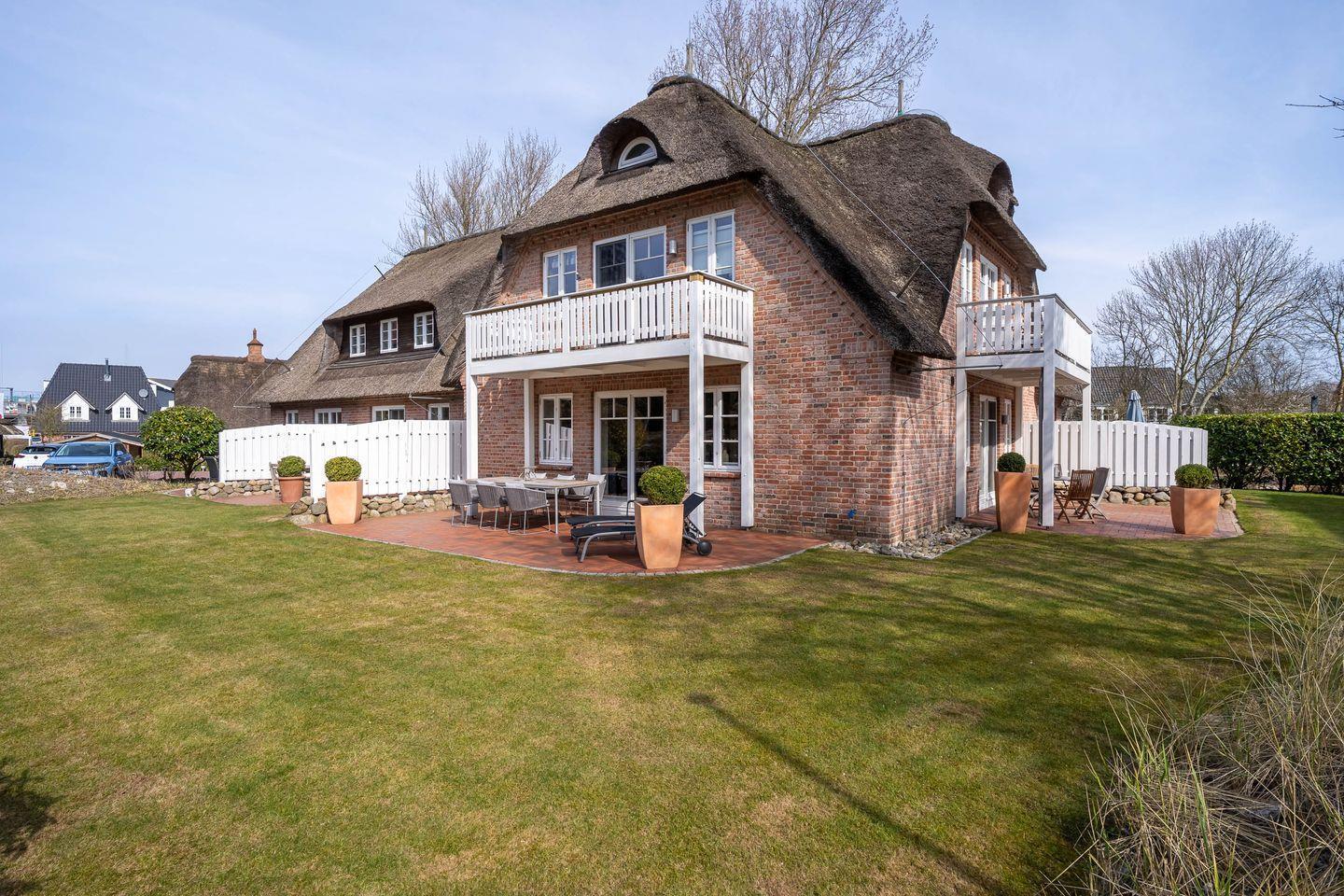 Von hier aus gelangen Sie auch auf die privaten Terrassen, wo wunderschöne Gartenmöbel und ein Strandkorb bereitstehen. Genießen Sie die frische Luft und die entspannende Atmosphäre – perfekt, um mit einem guten Buch zu entspannen und wertvolle Erinnerungen zu schaffen.