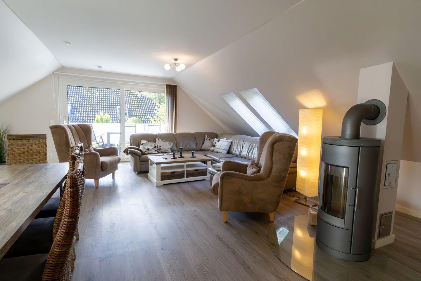Das Appartement "Heverstroem 5" befindet sich im Obergeschoss des Hauses und ist über eine Treppe zu erreichen. Es bietet Ihnen ein großzügiges und hochwertig ausgestattetes Feriendomizil zum Wohlfühlen. Mit vier separaten Schlafzimmern und zwei modernen Badezimmern eignet sich dieses Appartement ideal für bis zu acht Personen – sowohl für Familien mit Kindern als auch für einen Urlaub mit Freunden.