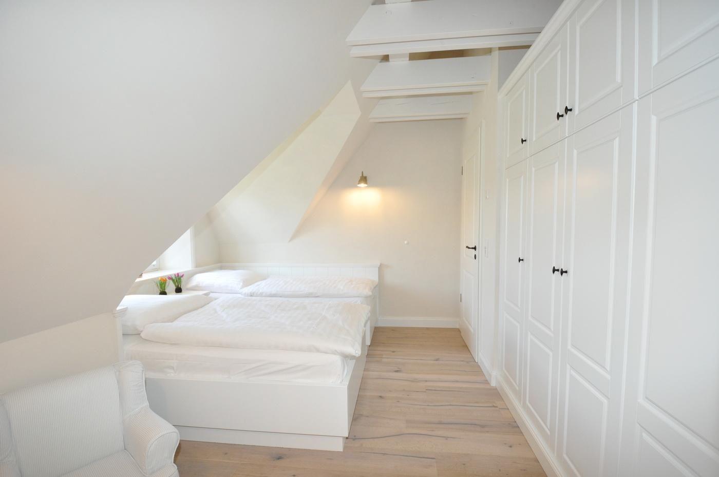 Obergeschoss: zwei Schlafzimmer mit Doppelbett (je 180 x 200 cm - Einzelmatratzen) und je einem Duschbad / WC en Suite, ein Schlafzimmer mit 2 Einzelbetten (je 90 x 200 cm), ebenfalls mit einem Duschbad / WC en Suite
