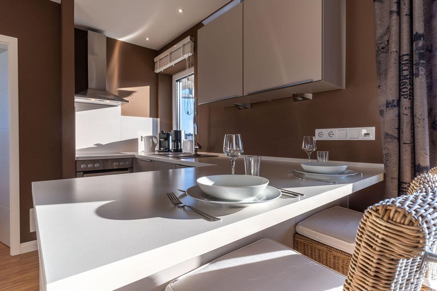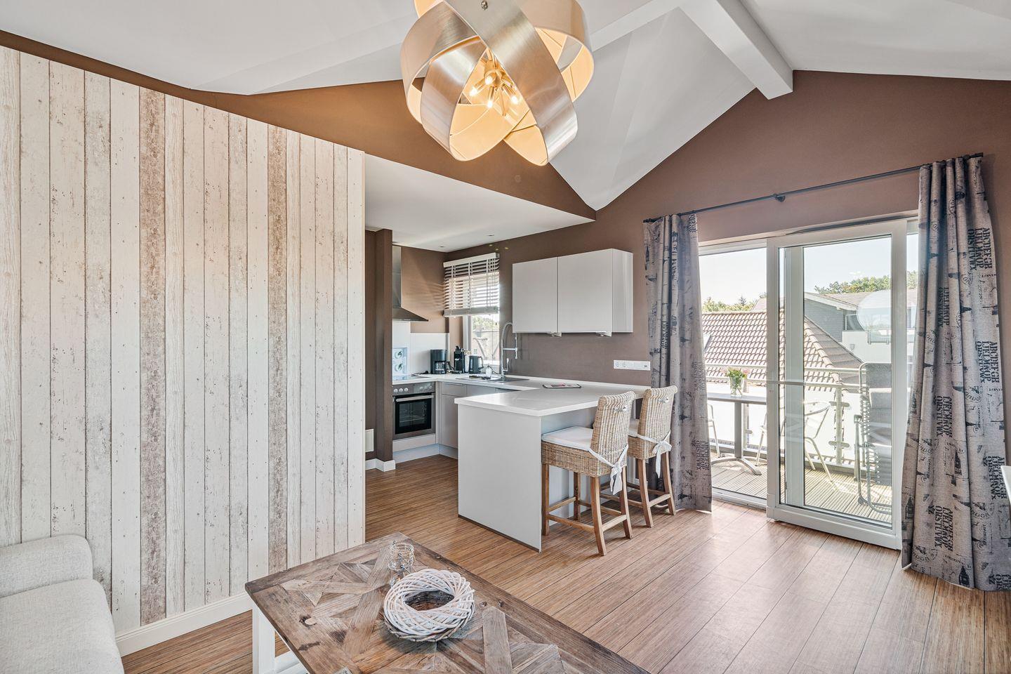 Das Penthouse verfügt über ca. 50 m² Wohnfläche und ist sehr mediterran mit Möbeln von Riviera Maison zum Träumen eingerichtet. Ein gemütliches Wohnzimmer mit TV und offener Wohnküche laden zum Chillen ein. Die Küche ist mit hochwertigen Geräten voll ausgestattet. Das Duschbad ist großzügig gestaltet und bieten genügend Platz für Ihre Utensilien. Ein Schlafzimmer mit Doppelbett und offenem Fußende sorgt für ruhevolle Erholung.