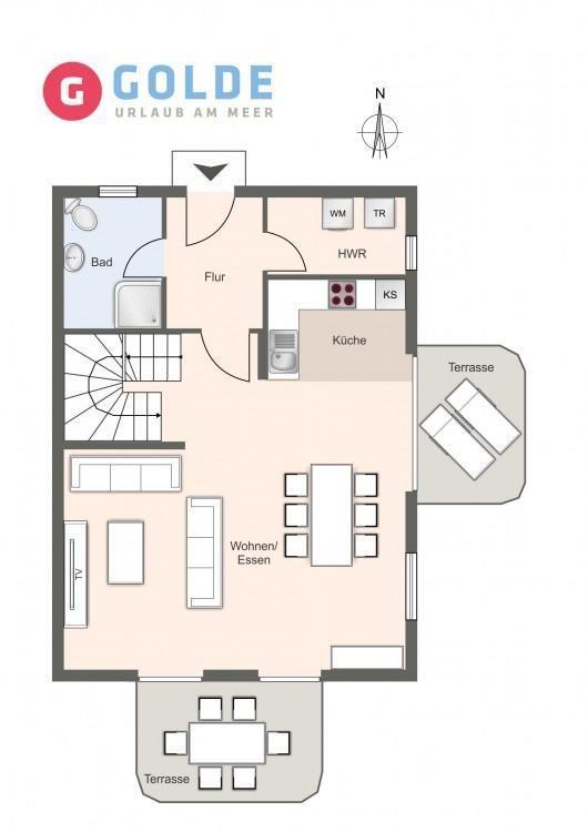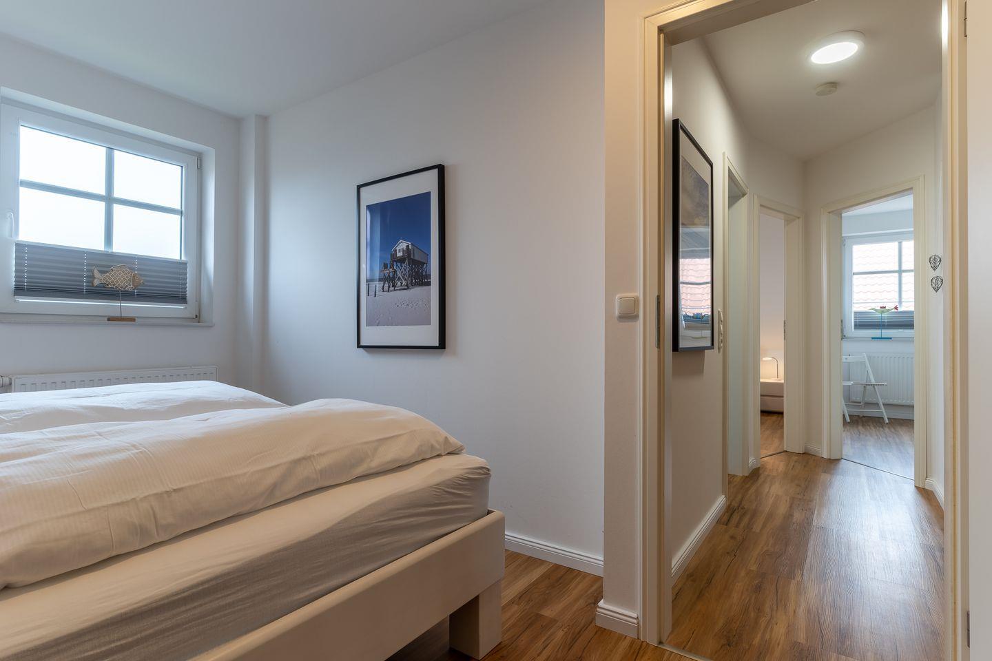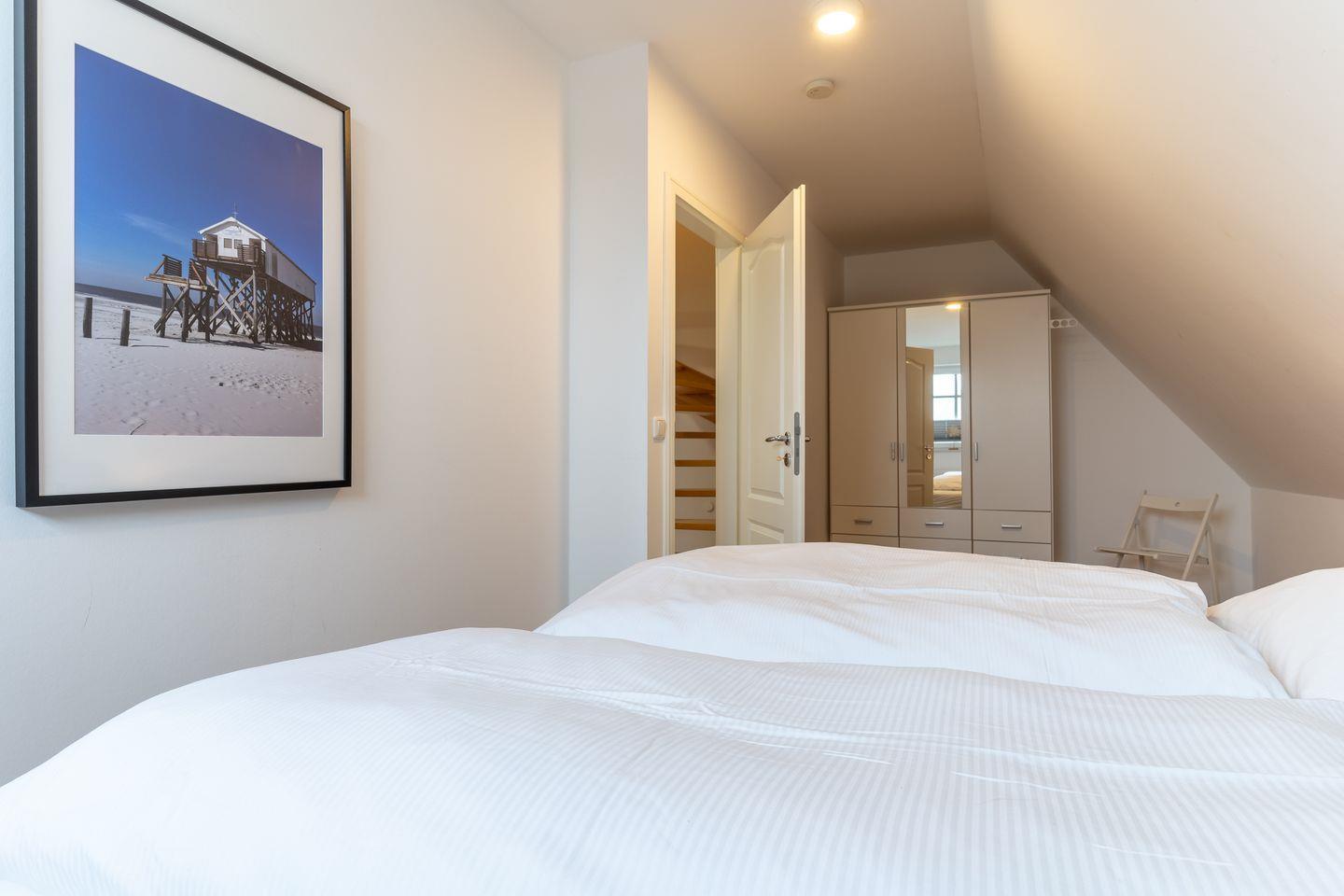 Das wunderschöne Doppelhaus mit Garten und 2 gemütlichen Terrassen befindet sich in einer ruhigen Parallelstraße zum Strand im Ortsteil Ording. Das Haus verfügt über ca. 90m² Wohnfläche und teilt sich wie folgt auf: Im Erdgeschoss befindet sich der großzügige Wohnraum mit einer hellen offenen Wohnküche und einem gemütlichen Essbereich. Die Küche ist voll ausgestattet mit hochwertigen Geräten und edlem Geschirr. Im Erdgeschoss ist ebenso ein großer Flur mit eingebauter Garderobe, ein Hauswirtschaftsraum und ein Duschbad. Über eine Holztreppe gelangt man in das Obergeschoss mit zwei großzügigen Schlafzimmern mit je einem Doppelbett und ein drittes Schlafzimmer mit einem Einzelbett, alle Schlafzimmer haben Boxspringbetten. Ein weiteres Duschbad bietet jeden Komfort. Mit viel Liebe zum Detail wurde großen Wert auf die Inneneinrichtung gelegt. Das ganze Haus verfügt über große Fenster und somit ist jeder Raum herrlich lichtdurchflutet.