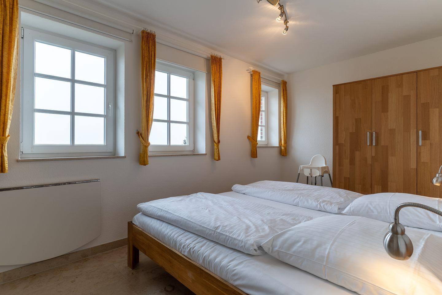Die Erdgeschosswohnung "Aussicht" verfügt über ca. 52m² Wohnfläche. Sie haben einen eigenen separaten Eingang und gelangen direkt in den Flur, der für Abstellmöglichkeiten sehr nützlich ist. Von dort gelangt man in den Wohnraum mit einer großzügigen offenen Wohnküche und einem gemütlichen Essbereich. Die Küche ist mit hochwertigen Geräten voll ausgestattet. Ebenso vom Flur abgehend haben Sie ein Duschbad und ein geräumiges Doppelschlafzimmer mit 3 Fenstern. Alle Fenster können mit Rollos und Vorhängen verdunkelt werden. Die Wohnung ist wunderbar lichtdurchflutet und bietet von allen Fenstern aus einen traumhaften Blick über die Wiesen.