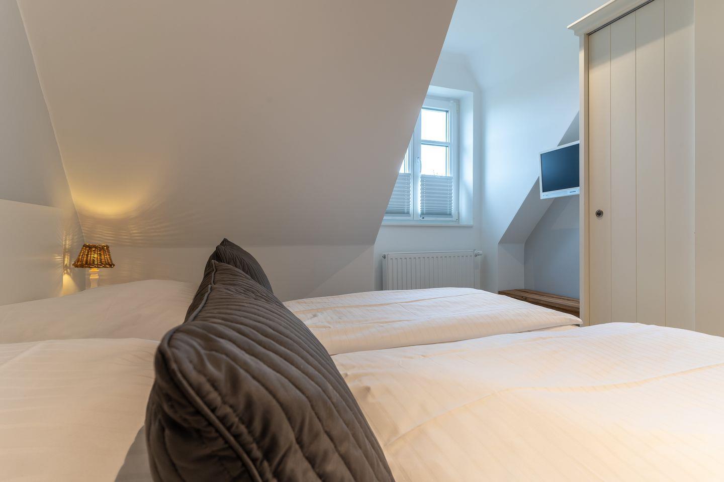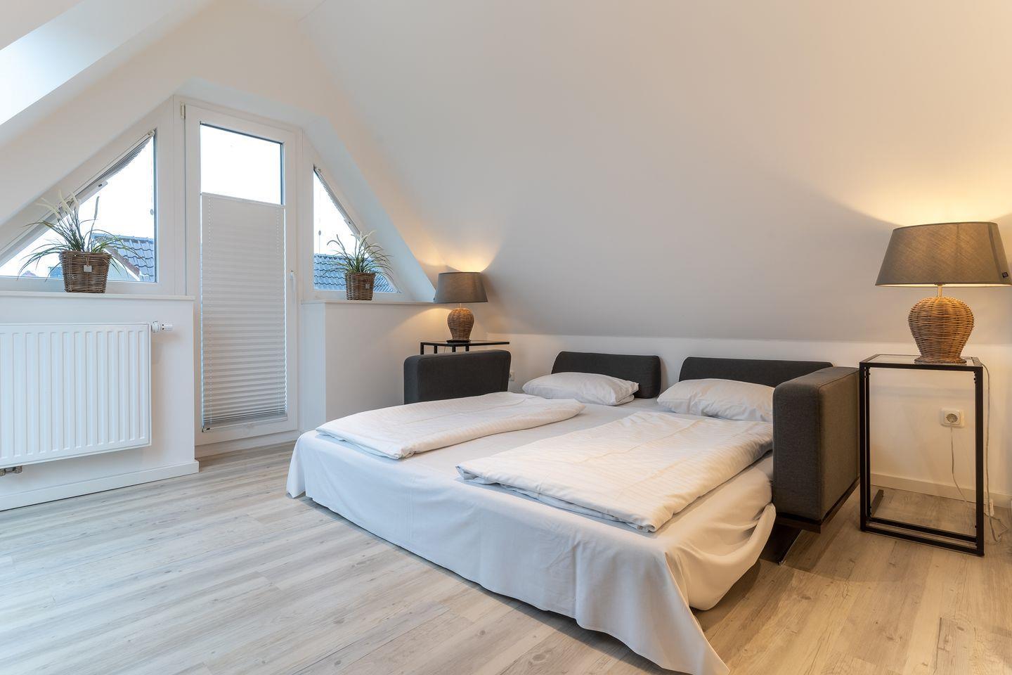 Die luxuriöse Endhausscheibe mit Garten, gemütlicher Terrasse und traumhaften Blick über den Deich befindet sich direkt am Ordinger Hauptstrand. Das Endhaus verfügt über ca. 84 m² Wohnfläche und teilt sich wie folgt auf: Im Erdgeschoss befindet sich der Wohnraum mit einer offenen Wohnküche und einem gemütlichen Essbereich. Ein edler Kamin im Wohnraum bietet ruhevolle Entspannung. Die Küche ist mit hochwertigen Geräten und edlem Geschirr voll ausgestattet. Im Erdgeschoss ist ebenso ein Gäste WC, ein Flur mit Garderobe, ein Abstellraum unter der Treppe und Hauswirtschaftsraum mit Waschmaschine. Über eine Holztreppe gelangt man in das Obergeschoss mit zwei großzügigen Schlafzimmern, eines mit einem Doppelbett und das Andere mit 2 Einzelbetten. Ebenso ist im OG noch ein geräumiges Duschbad. Über eine weitere Holztreppe geht es vom Doppelzimmer der Einzelbetten ins Dachgeschoss mit gemütlichem Schlafsofa für 2 Personen. Hier kann man mit einem traumhaftem Weitblick bis zum Wasser herrlich entspannen oder übernachten. Mit viel Liebe zum Detail wurde großen Wert auf die Inneneinrichtung gelegt. Das ganze Haus verfügt über große Fenster und somit ist jeder Raum herrlich lichtdurchflutet.