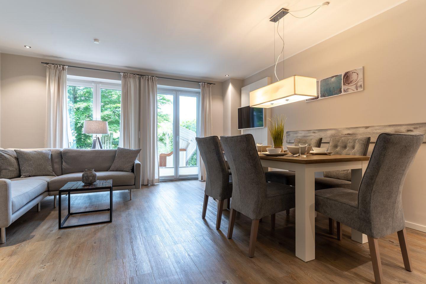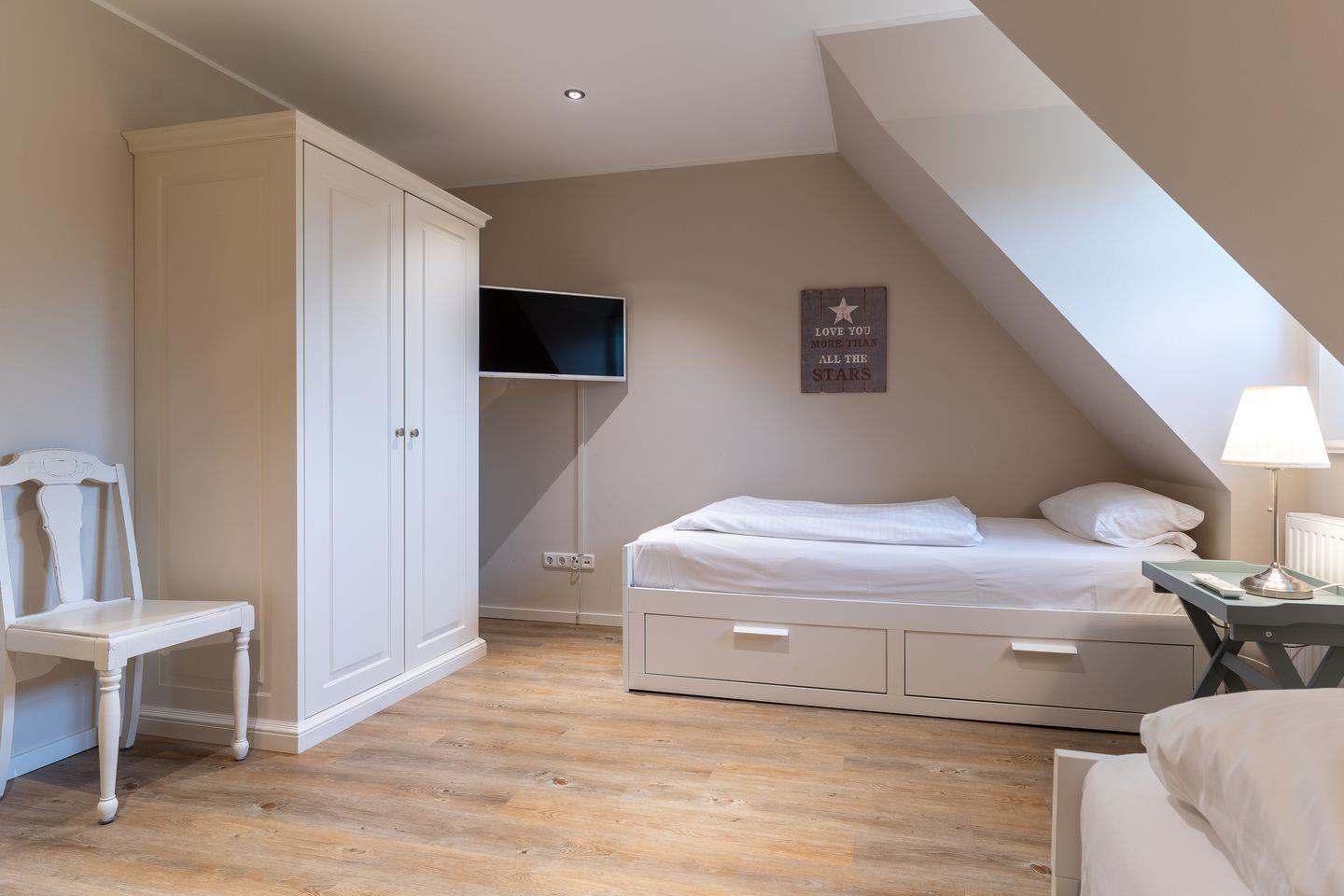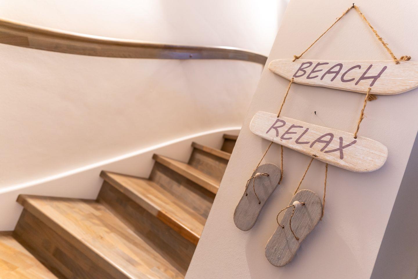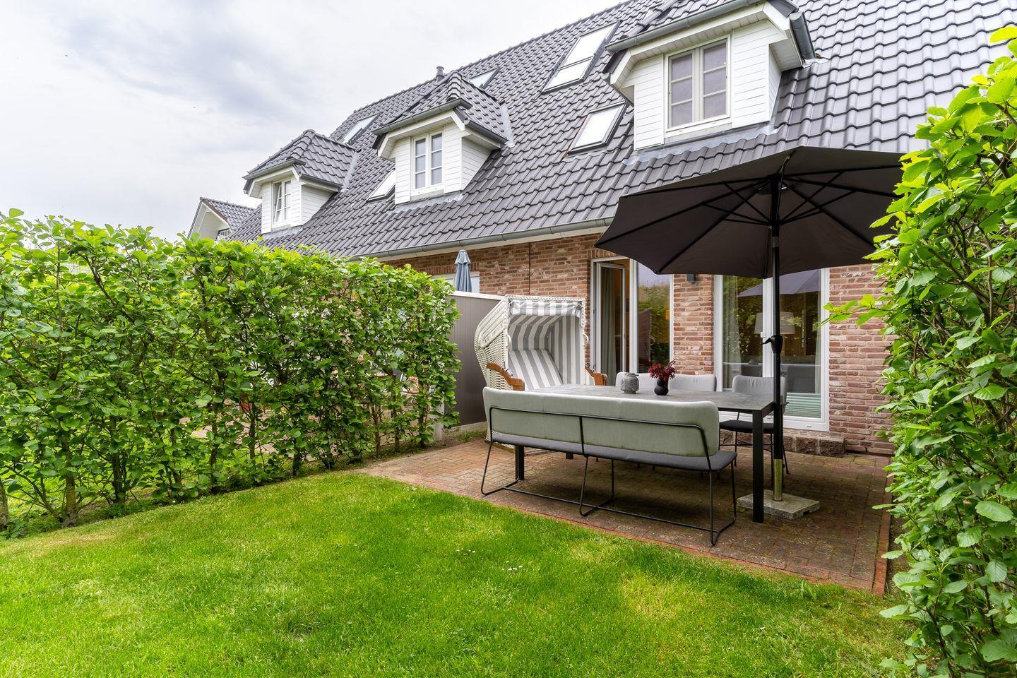Die luxuriöse Mittelhausscheibe mit Garten, gemütlicher Terrasse und traumhaften Blick über den Deich befindet sich direkt am Ordinger Hauptstrand. Das Haus verfügt über ca. 84 m² Wohnfläche und teilt sich wie folgt auf: Im Erdgeschoss befindet sich der Wohnraum mit einer offenen Wohnküche und einem gemütlichen Essbereich. Ein edler Kamin im Wohnraum bietet ruhevolle Entspannung. Die Küche ist mit hochwertigen Geräten und edlem Geschirr voll ausgestattet. Im Erdgeschoss ist ebenso ein Gäste WC, ein Flur mit Garderobe, ein Abstellraum unter der Treppe und Hauswirtschaftsraum mit Waschmaschine. Über eine Holztreppe gelangt man in das Obergeschoss mit zwei großzügigen Schlafzimmern, eines mit einem Doppelbett und das Andere mit 2 Einzelbetten. Ebenso ist im OG noch ein geräumiges Duschbad. Über eine weitere Holztreppe geht es vom Doppelzimmer der Einzelbetten ins Dachgeschoss mit gemütlichem Schlafsofa für 2 Personen. Hier kann man mit einem traumhaftem Weitblick bis zum Wasser herrlich entspannen oder übernachten. Mit viel Liebe zum Detail wurde großen Wert auf die Inneneinrichtung gelegt. Das ganze Haus verfügt über große Fenster und somit ist jeder Raum herrlich lichtdurchflutet.