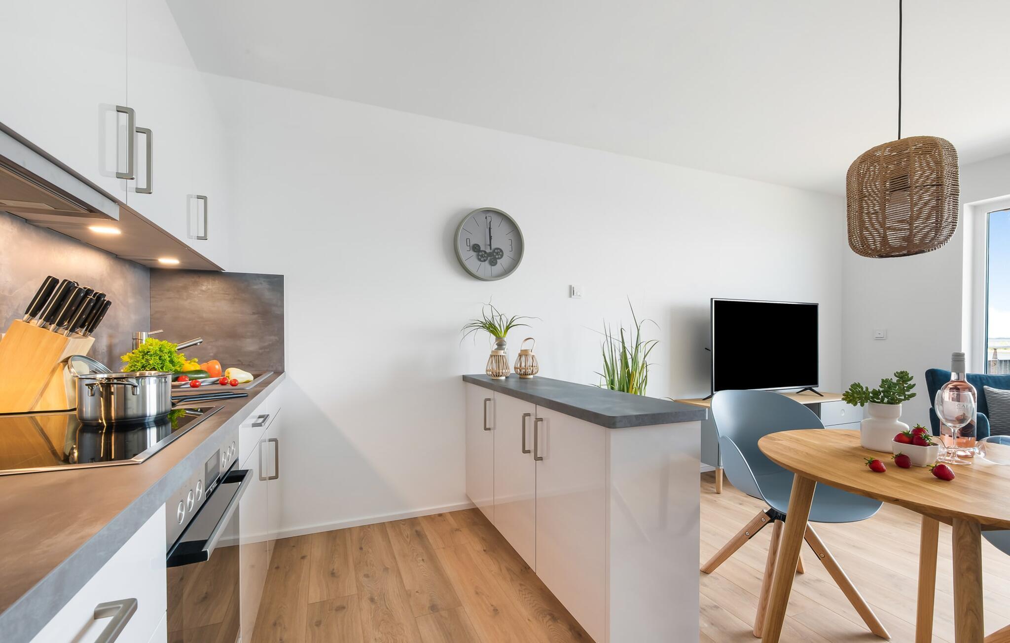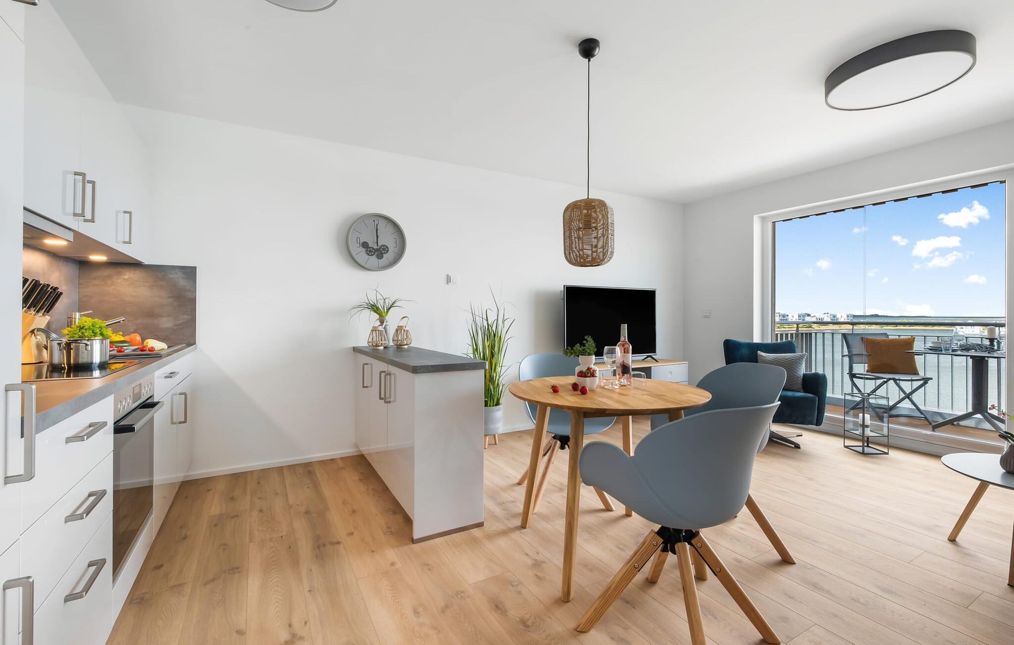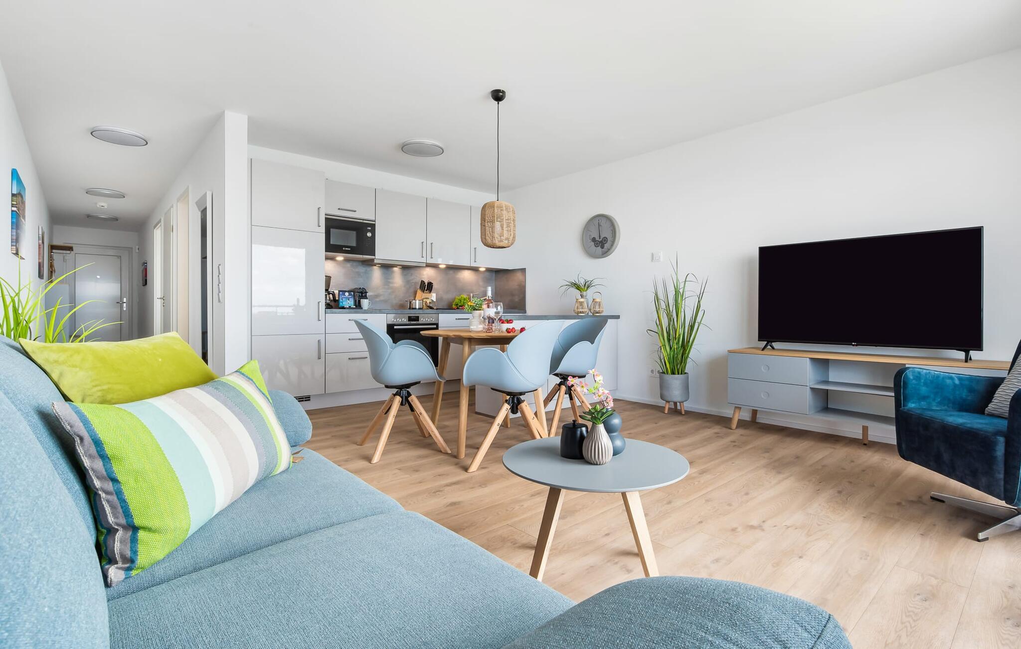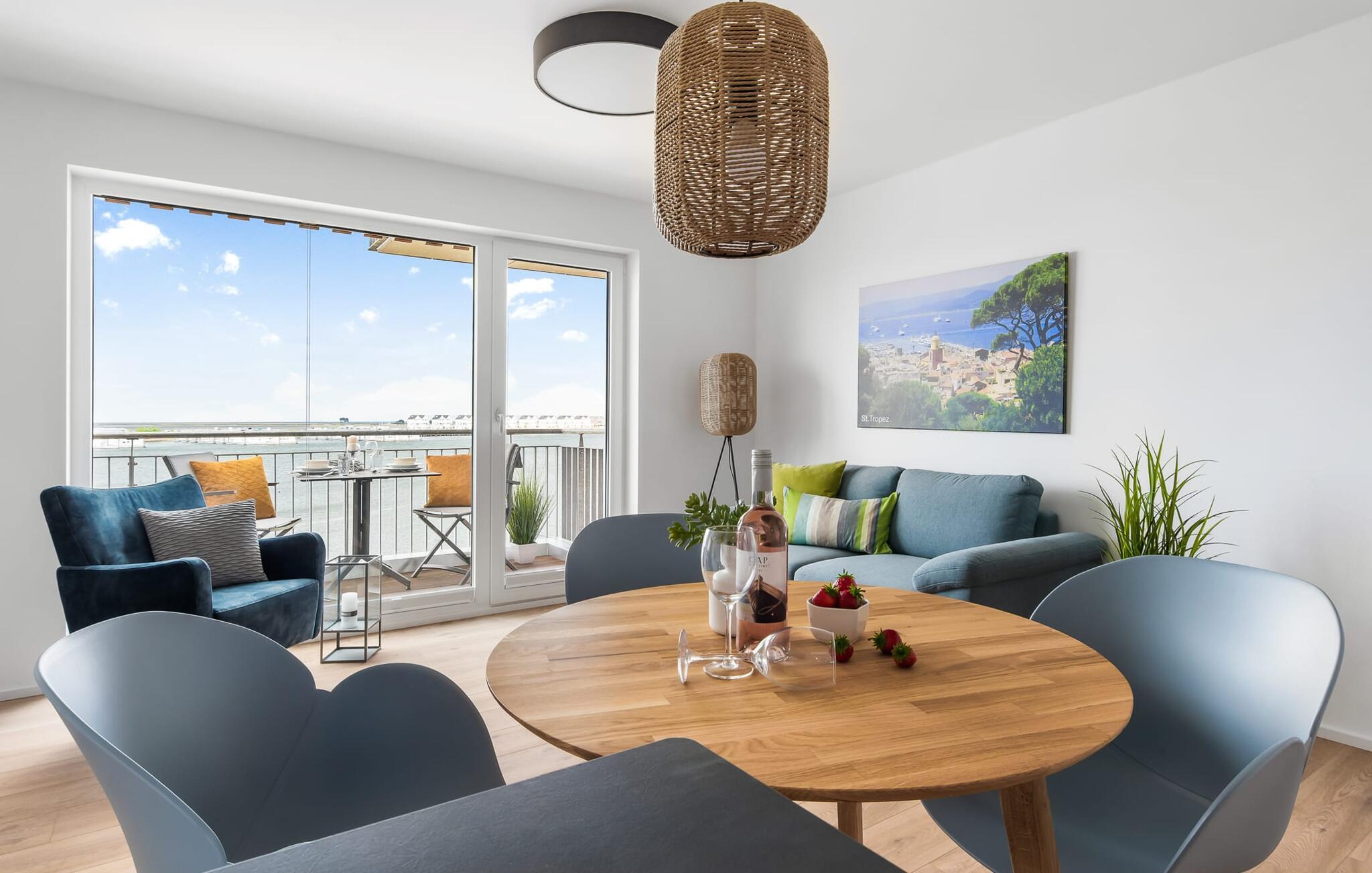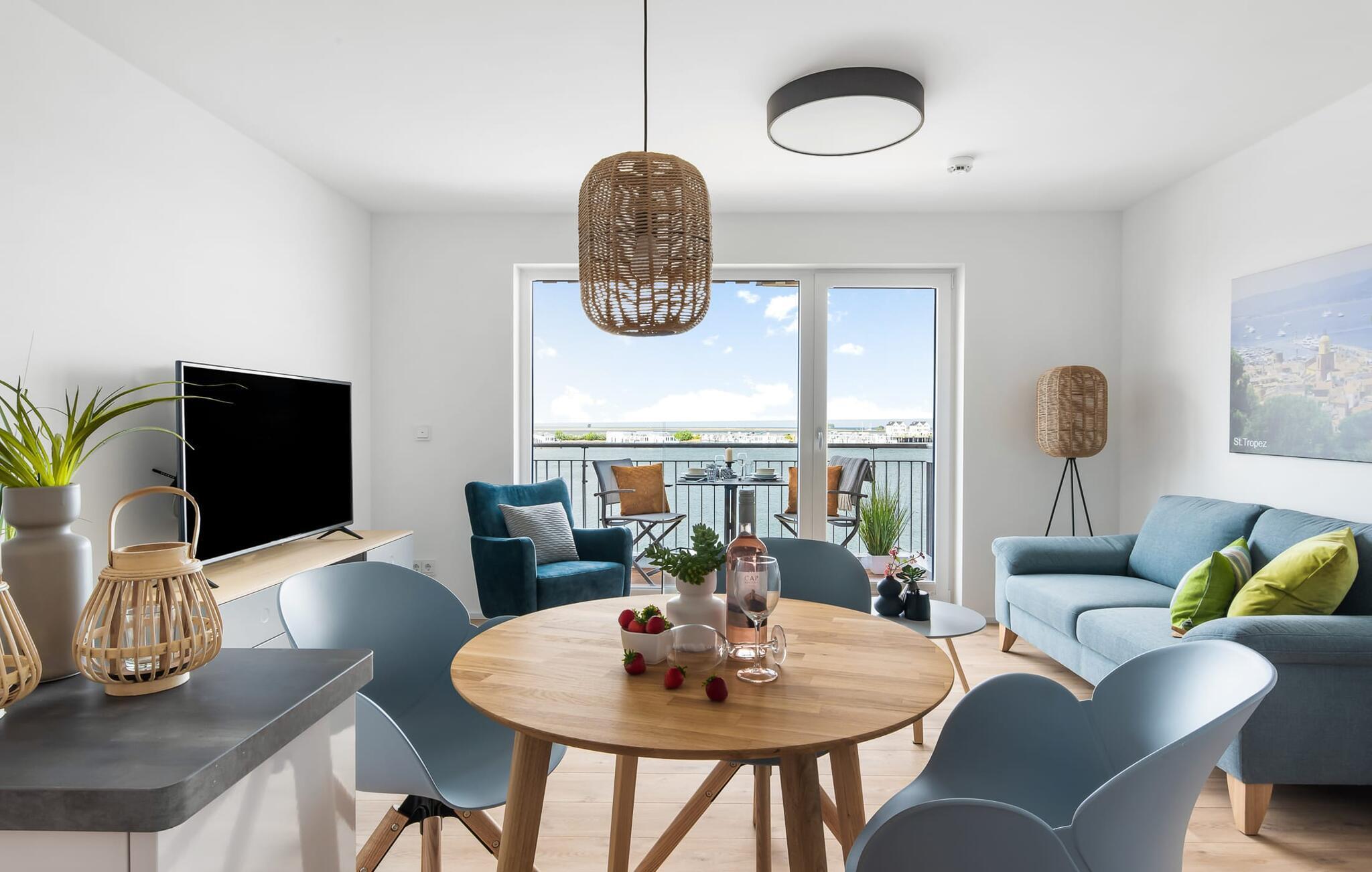 Ferielejligheden ST. TROPEZ til 2 personer ligger direkte på havnepromenaden i feriestedet Olpenitz ved Østersøen og byder på alt, hvad I kan forestille jer til en afslappende ferie ved vandet. Promenaden med sine små, fristende butikker og et velassorteret EDEKA-marked med bageri ligger bogstaveligt talt for gæstens fødder og indbyder til slentretur og indkøb. Sandstranden Weidefelder ligger i umiddelbar nærhed og er et must! Her er smukt på alle tider af året, ikke kun når strandstolene kalder om sommeren. I kan tage endeløse gåture her på den åbne Østersø og lade hverdagen bag jer. Lås døren til lejligheden op, kom ind og føl jer bare godt! jeres udsigt falder direkte gennem gulv-til-loft vinduerne over altanen til havnen og vandet til horisonten Nyd følelsen af ST. TROPEZ i feriestedet Olpenitz ved Østersøen. Den åbne stue/spisestue med den hyggelige opholdsstue og fjernsyn inviterer jer til at dase, og det veludstyrede køkken frister jer til at lave mad sammen. Det særlige højdepunkt er køkkenbordet. Spiseområdet lader heller intet tilbage at ønske, og I bliver glad for at blive siddende længere. Soveværelset med sin komfortable dobbeltseng og endnu et fjernsyn tilbyder de bedste betingelser for en afslappet søvn. Ud over alt det nyttige, har badeværelset en bruser på gulvniveau til en vellykket start på en ny feriedag. jeres pakke inkluderer en parkeringsplads ved huset og en elevator, der bringer jer komfortabelt til anden sal. Vores yndlingssted: efter en vellykket feriedag at se travlheden i havnebassinet fra balkonen ved solnedgang... Bemærk venligst: OstseeResort Olpenitz er meget populært, og der bygges fortsat i parken. Ikke desto mindre kan I se frem til en 5-stjernet standard og et førsteklasses ophold. Byggeaktiviteterne kommer ikke til at forstyrre jer på ferien, og derfor gives der ikke yderligere afslag i prisen.