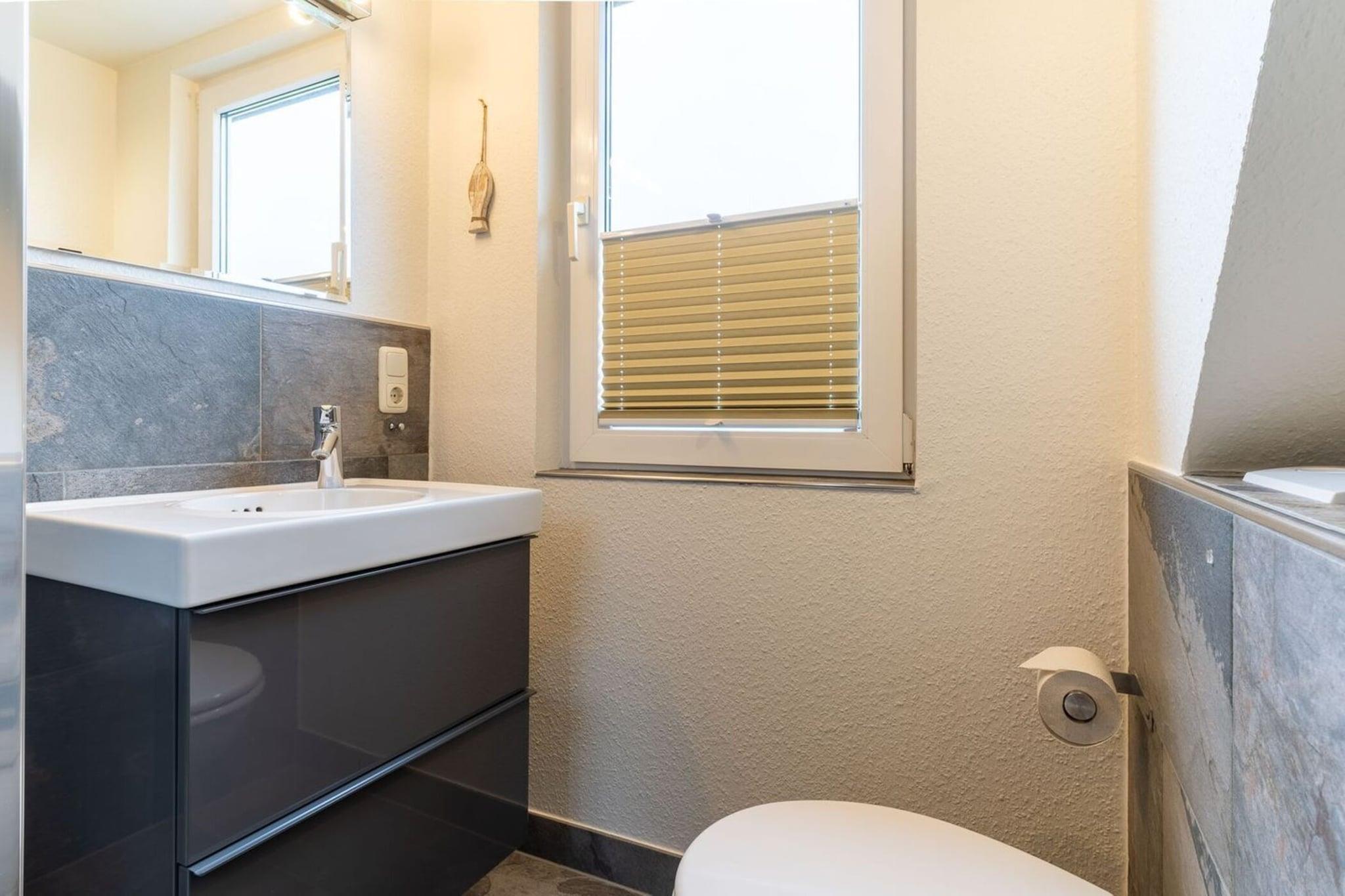 Feriehuset ligger i den idylliske bydel Dorf med dens småby-flair. Nyd den centrale beliggenhed og stadig den absolutte fred og ro. Den hyggelige bykerne med dens caféer, restauranter og butikker kan nås på få minutter til fods og havdiget er kun en kort gåtur væk Lejligheden er nænsomt møbleret og meget veludstyret til årets smukkeste dage. interiøret i lejligheden er af høj kvalitet Materialer, generøsitet og en puristisk, moderne atmosfære. Den strålende lyse stue og spisestue med det åbne køkken fører til den rummelige terrasse. Soveværelserne - klare linjer, modernitet parret med en masse komfort. i haven er der et haveskur, hvor du kan opbevare dine cykler kan læ og også cykelstativer. I et separat rum er der vaskemaskine og tørretumbler, som du kan bruge mod et mindre gebyr. Feriehuset har 4 lejligheder. Disse kan plads til 2 eller 4 personer. Højdepunkter inkluderet: WiFi, aktiviteter i nærheden: aktive feriegæster vil finde det i distriktet Ording er Mekka for strand- og vandsportsentusiaster Mobilitet: Ikke egnet for personer med begrænset mobilitet.