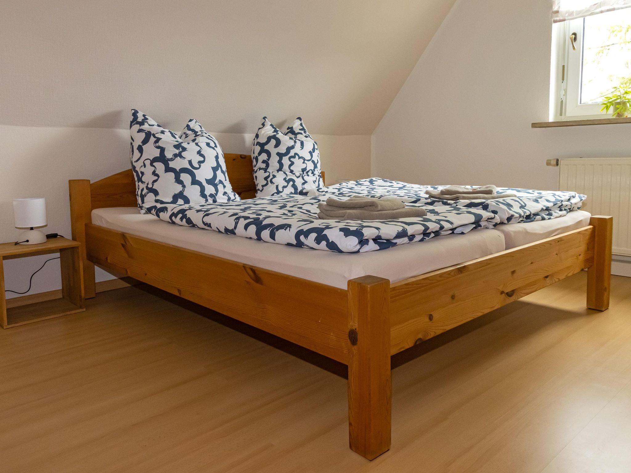 Im Spitzdach gibt es noch ein weiteres Schlafsofa (1,40m) und ein offenes Bad mit Badewanne und Waschtisch. Im Keller befindet sich die Sauna und eine Waschmaschine, die bei Bedarf genutzt werden kann.