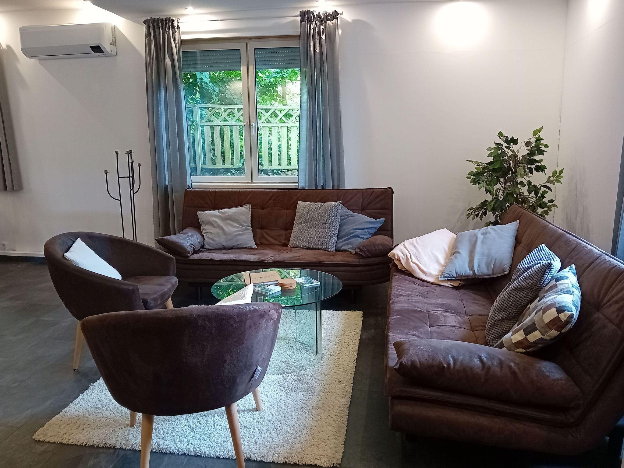 Die Auszeit39 verfügt über einen großzügigen Wohn- und Essbereich sowie eine vollausgestattete Küche. Vom Wohnbereich aus ist die Kegelbahn direkt zugänglich, zwei Bahnen stehen hier für gesellige Stunden zur Verfügung. Neben den zwei Schlafsofas mit Platz für 4 Personen im Wohnzimmer, verfügt die Auszeit39 über ein Schlafzimmer mit Doppelbett. WC und Duschbad sind voneinander getrennt. Eine Spülmaschine steht im Nebenraum zur Verfügung; die Nutzung der Waschmaschine ist auf Anfrage möglich. Bettwäsche und Handtücher sind beim Aufenthalt inkludiert.