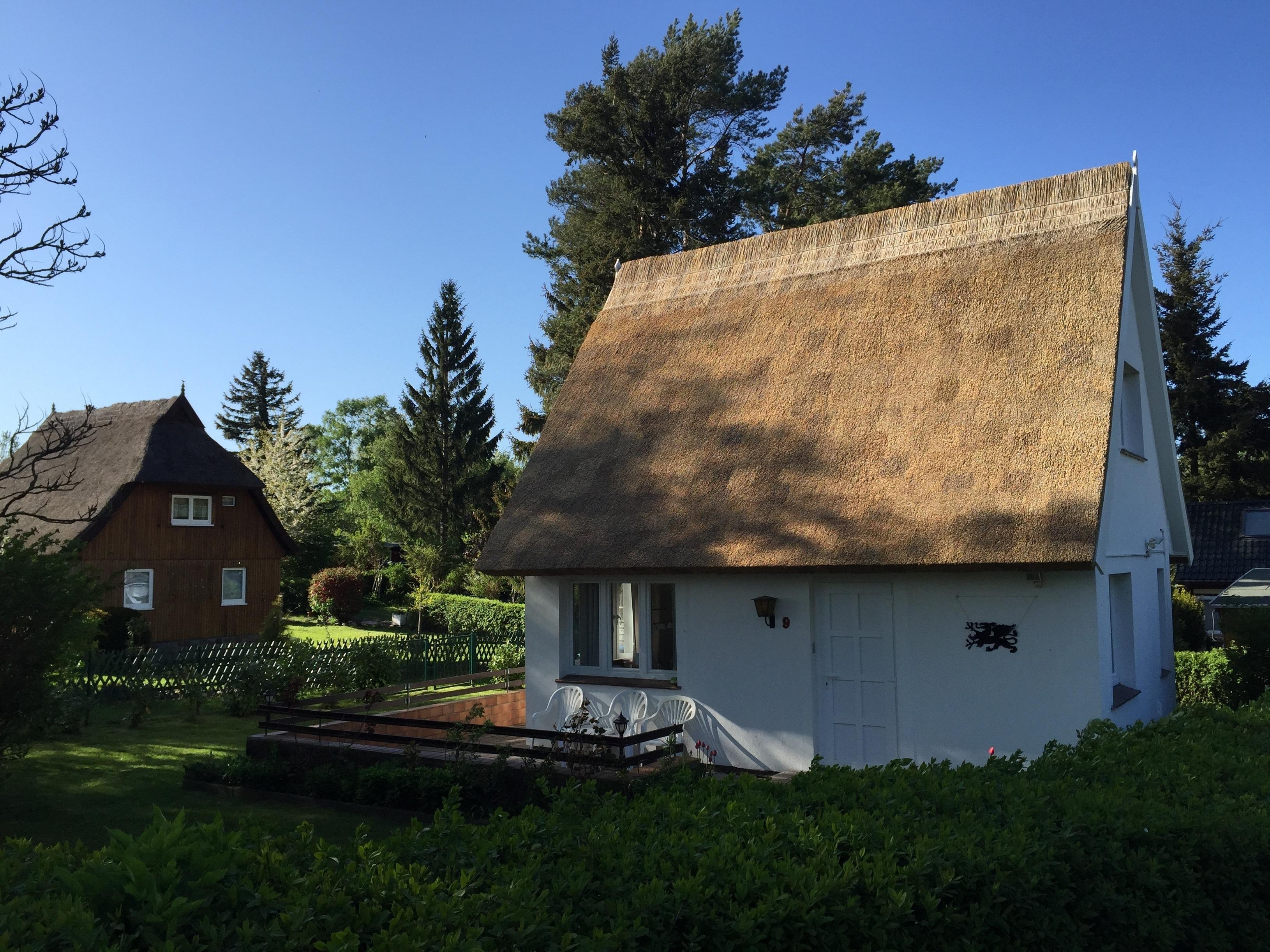 Reetdach-Ferienhaus für 2-3 Personen in Stahlbrode direkt am Greifswalder Bodden an der Ostsee in ruhiger Lage mit grosser Sonnenterrasse und gehobener Ausstattung.
