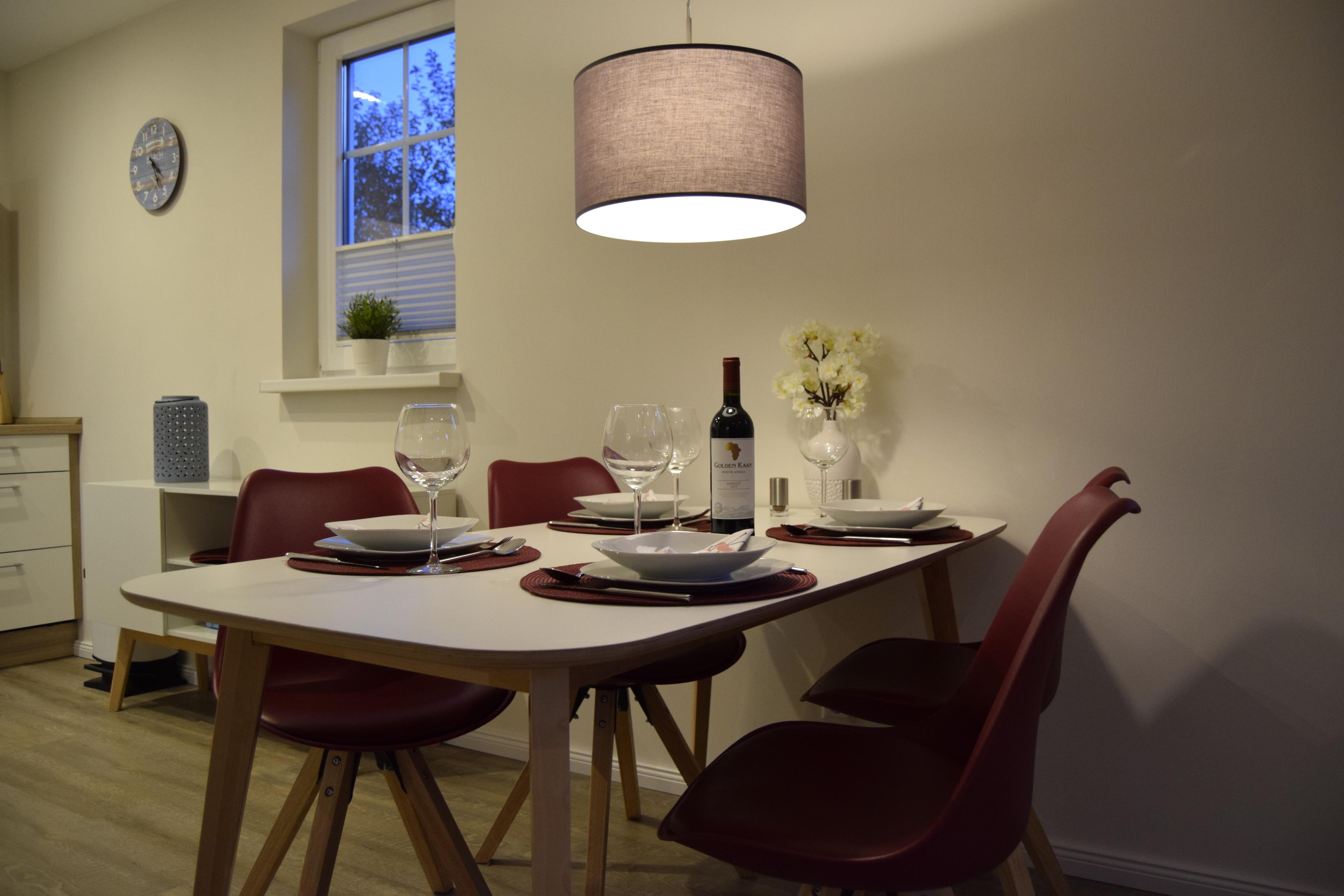Das Ferienhaus befindet sich auf einem weitläufigem Grundstück, das einst eine Hofstelle war. Das große Wohnzimmer lädt zu geselligem Beisammensein ein. Hier wird gekocht, gegessen oder einfach nur faul auf der Couch gelegen. Die offene Küche lässt großen Spielraum für das Zaubern leckerer Speisen, die gleich gegenüber am Esstisch eingenommen werden können. Auf der Eckcouch lässt es sich nach dem Essen famos mit dem Buch in der Hand oder vor dem Fernseher faulenzen, während die Geschirrspülmaschine für Sie die Küchenarbeit erledigt. Die zwei separaten Schlafzimmer verfügen über je ein Doppelbett und einen großen Einbauschrank sowie Kommoden mit viel Stauraum. In den zwei hellen Badezimmern erwartet Sie u.a. eine geräumige Dusche sowie eine Whirlpoolwanne, die zur Entspannung einlädt.