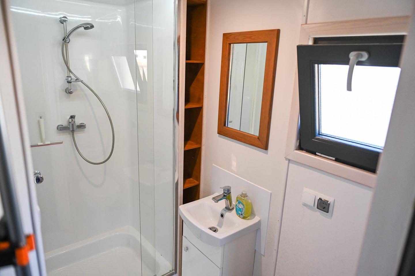 Willkommen im Eiderufer 3, deinem gemütlichen Mini-Ferienhaus im Ferienpark Süderstapel – ideal für eine erholsame Auszeit inmitten der Natur! Auf ca. 40 m² erwartet dich ein liebevoll gestalteter Wohlfühlort für bis zu 4 Personen. Das Ferienhaus verfügt über ein Schlafzimmer mit einem komfortablen Doppelbett (130 x 200 cm) sowie ein weiteres Schlafzimmer mit zwei Einzelbetten (65 x 200 cm). Die gut ausgestattete Küche mit Backofen und Geschirrspüler sorgt für extra Komfort, sodass du mühelos leckere Mahlzeiten zubereiten kannst. Genieße dein Frühstück oder entspannte Abende auf der privaten Terrasse mit bequemen Gartenmöbeln. Die direkt angrenzende Marina bietet zahlreiche Möglichkeiten für Wassersport und Bootsausflüge, während eine nahegelegene Badestelle an warmen Tagen für Erfrischung sorgt. Bitte beachte: Im Eiderufer 3 sind Haustiere nicht erlaubt. Wenn du mit Hund reisen möchtest, stehen dir unsere haustierfreundlichen Unterkünfte Eiderufer 1 und Eiderufer 2 zur Verfügung. Erkunde malerische Landschaften, charmante Städte und vielseitige Freizeitangebote und lass dich von der idyllischen Atmosphäre verzaubern. Buche jetzt deinen Aufenthalt im Eiderufer 3 und genieße unvergessliche Tage an der Eider!