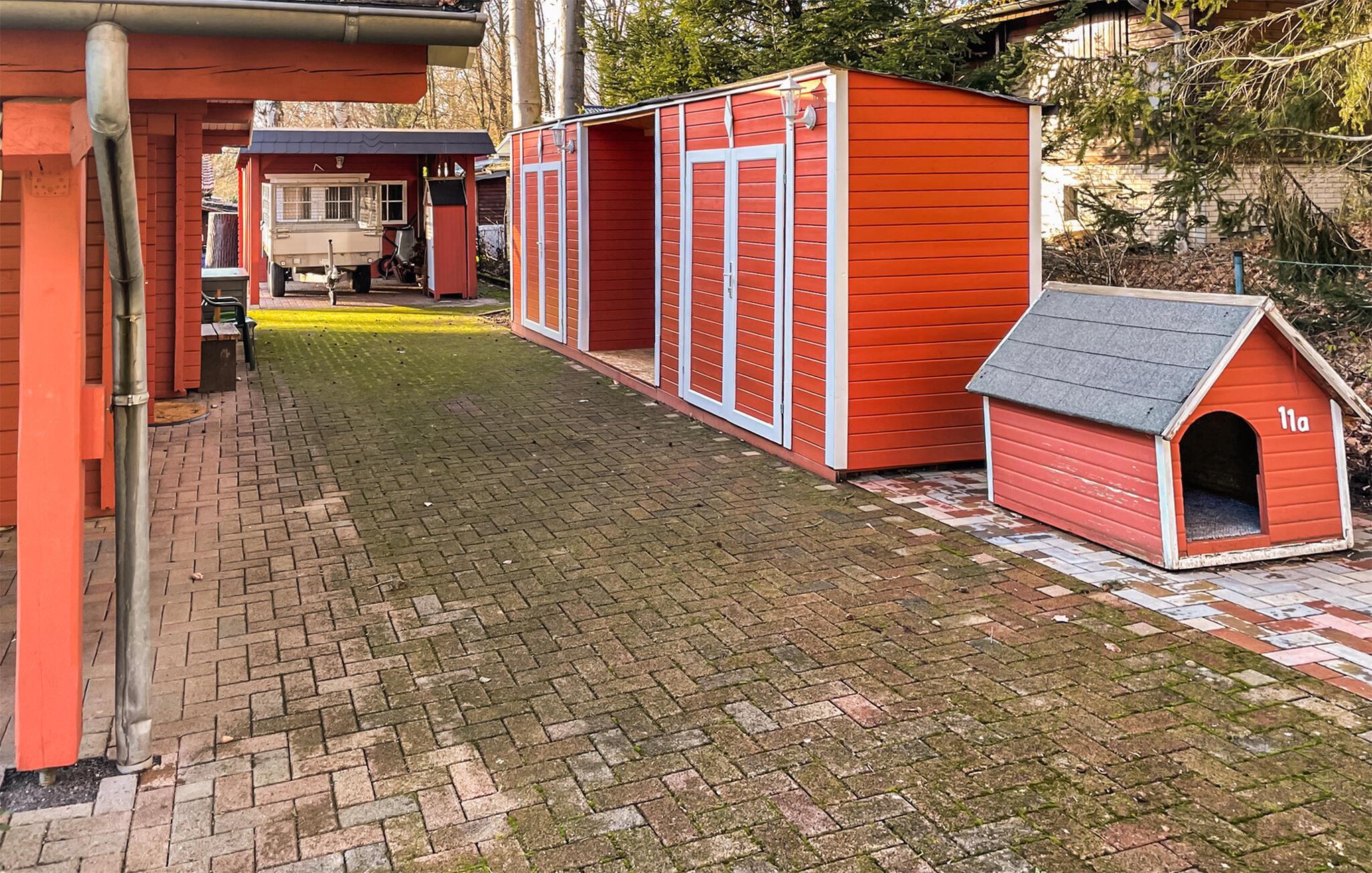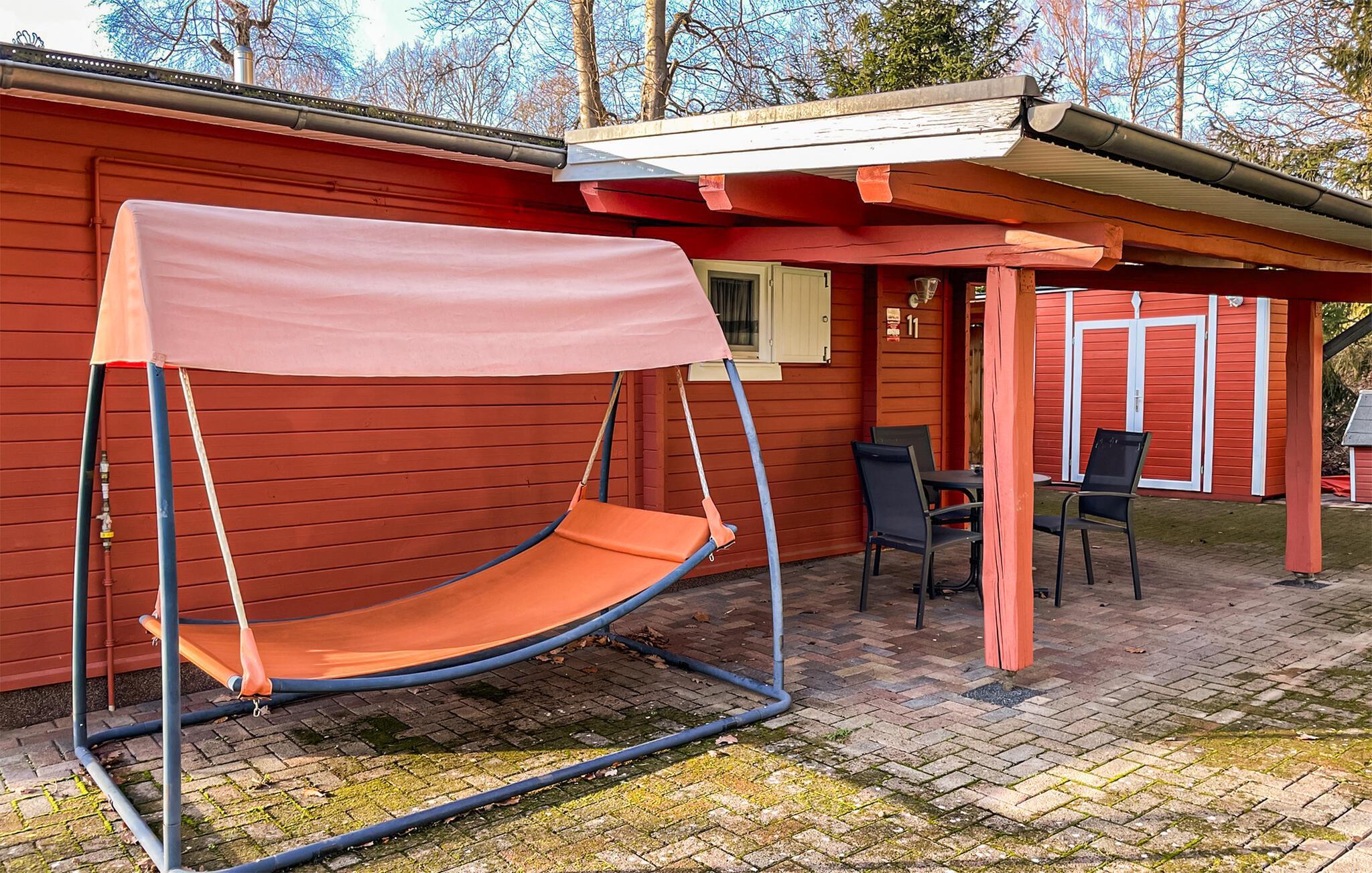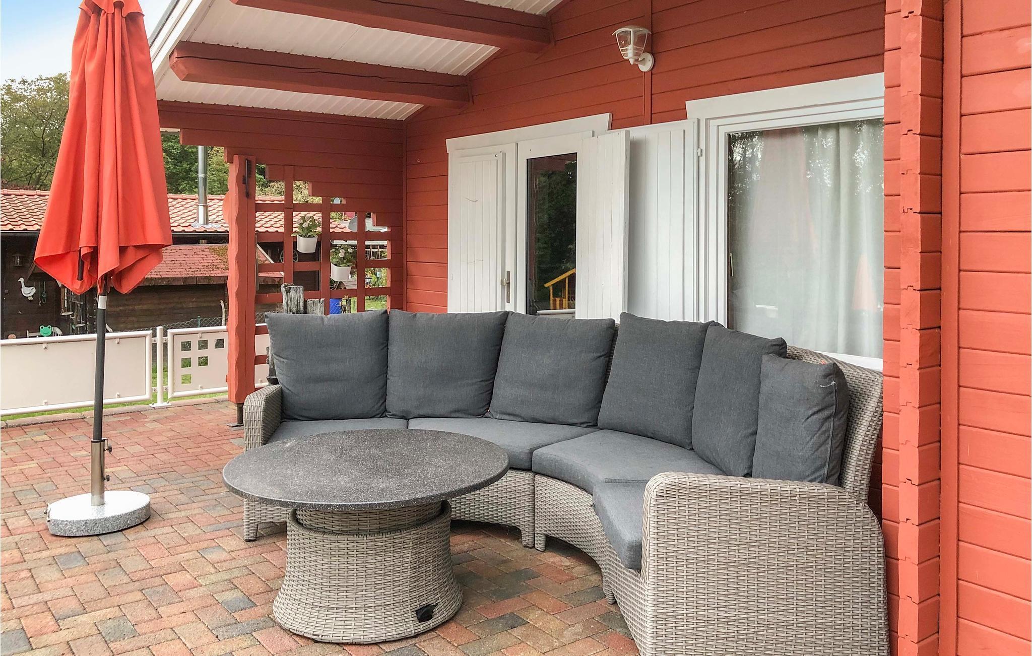 Kærligheden til Sverige var det, der inspirerede de venlige husejere til at skabe en oase af ro og afslapning. Det smagfulde og komfortabelt indrettede sommerhus, der grænser op til en skov, imponerer med sit typiske mørkerøde farveskema og øje for detaljer. Den hyggelige stue integrerer et køkken med keramisk kogeplade, hvorfra du har direkte adgang til terrassen, hvor havemøbler og liggestole i høj kvalitet er tilgængelige.
