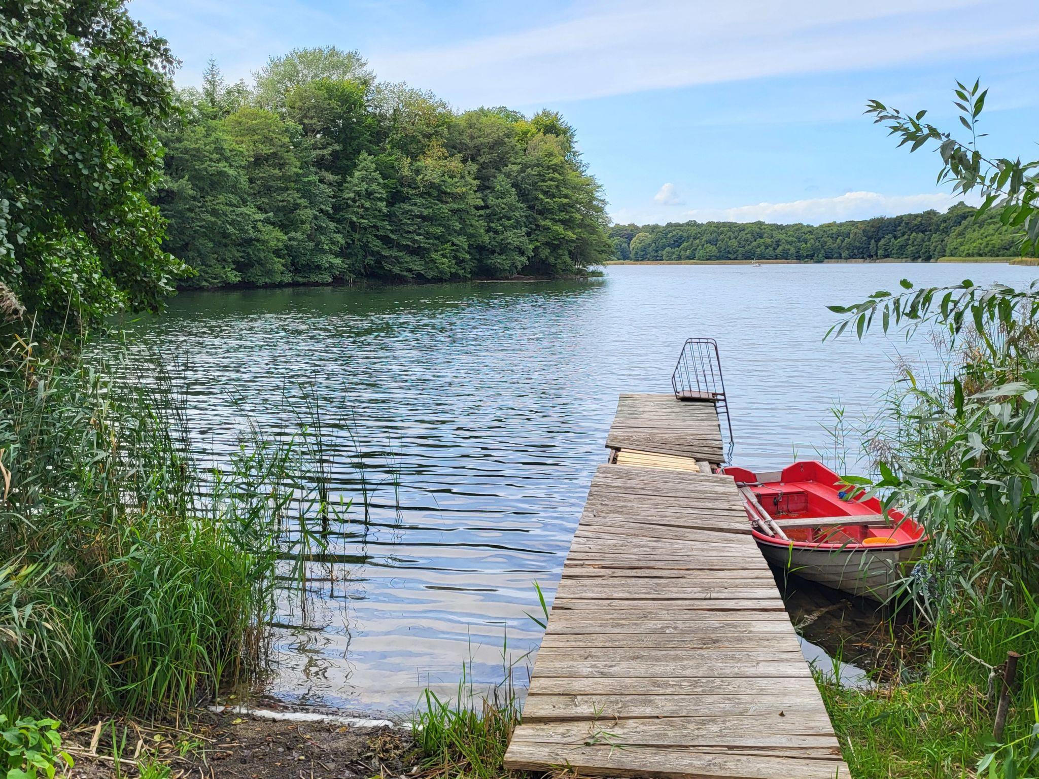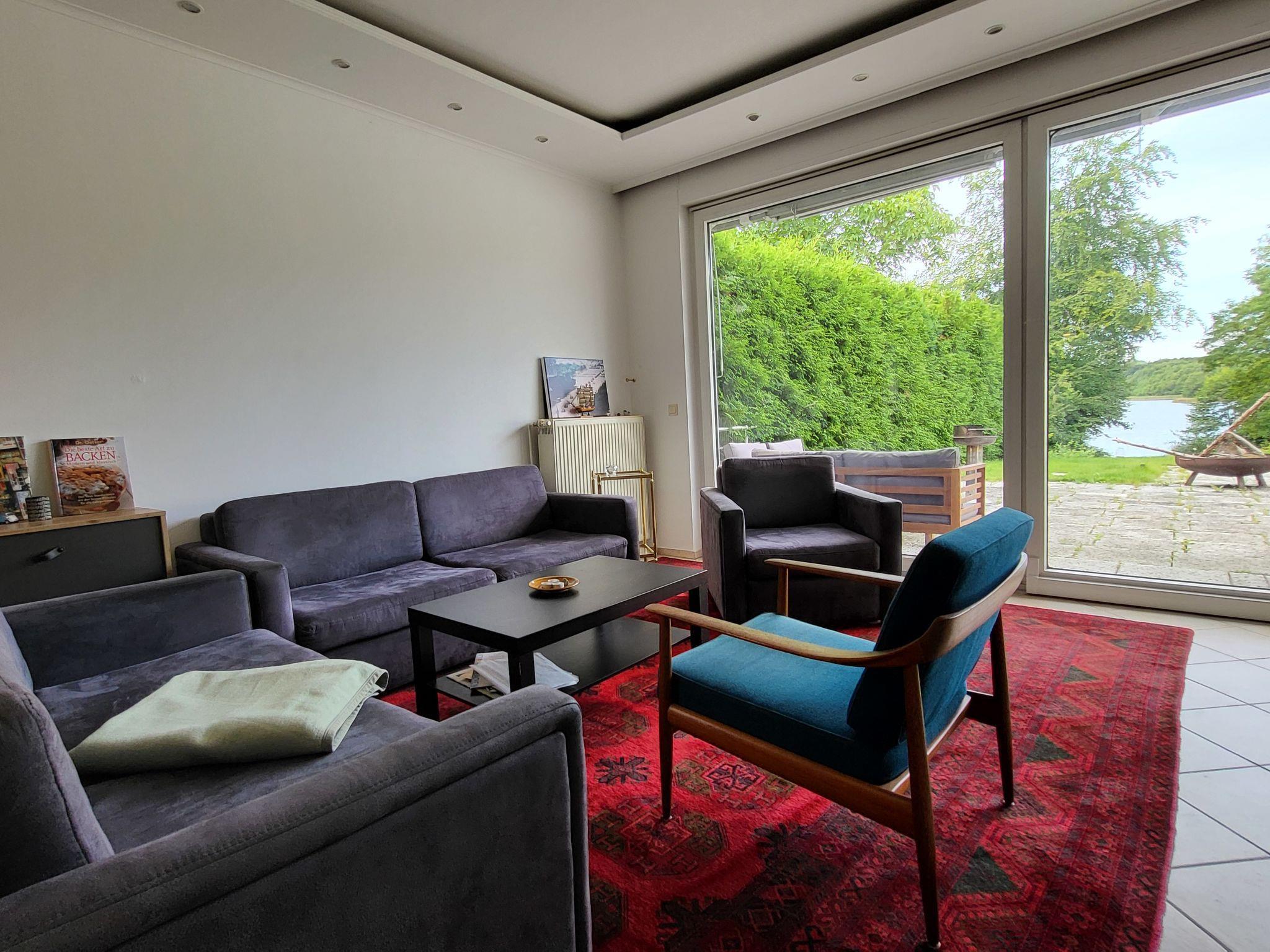 Comfortable apartment house. 5 apartments in the residence. Above Stechlin, in the district of Dagow 6 km from the centre of Stechlin, 16 km from the centre of Rheinsberg, in a quiet position, 20 m from the lake, direct access to the beach. Private: large garden (fenced) with lawn 250 m2, lawn for sunbathing. Bathing jetty, bathing place, parking on the premises. Supermarket 16 km, restaurant 1.5 km, café 1.5 km, bicycle rental 1.5 km, bus stop "Dagow-Dorf" 300 m, bathing lake "Dagowsee" 20 m. Sports harbour 16 km, golf course (18 hole) 45 km, sailing school 16 km, cycle lane 50 m, children's playground 5 km. Nearby attractions: Glasmacherhaus Neuglobsow 1.5 km, Naturparkhaus Stechlin 1.5 km, Schloss Rheinsberg 16 km, Gedenkstätte Ravensbrück 17 km. Well-known lakes can easily be reached: Großer Stechlinsee 1.5 km, Dagowsee 20 m, Röblinsee 12 km.
