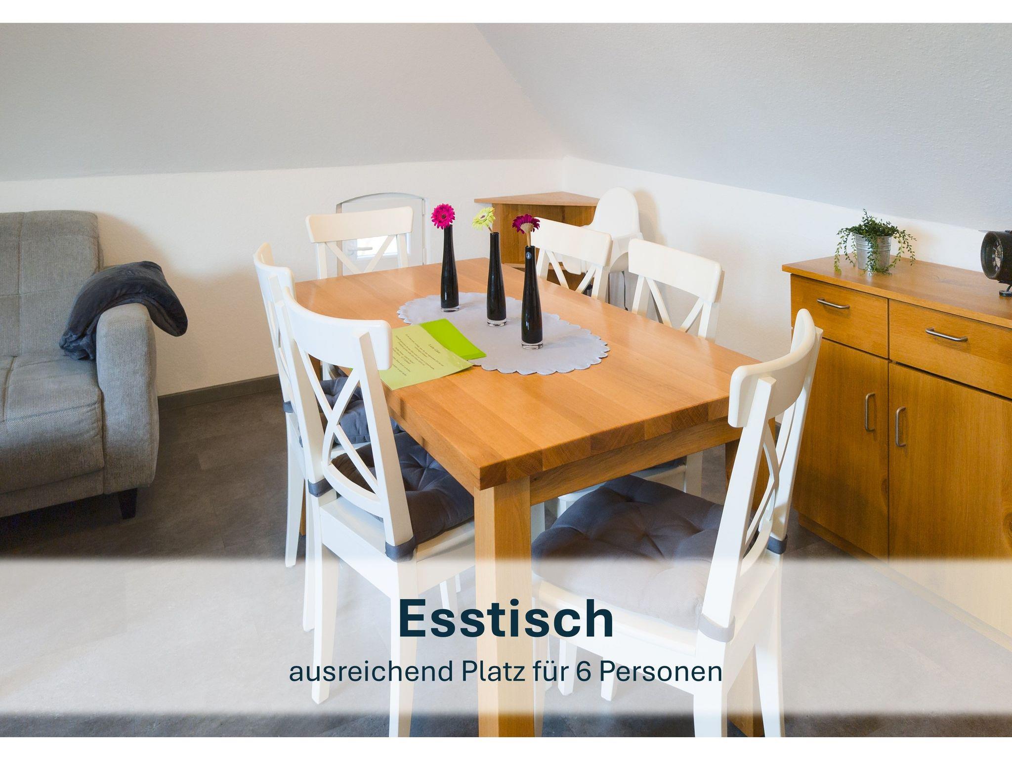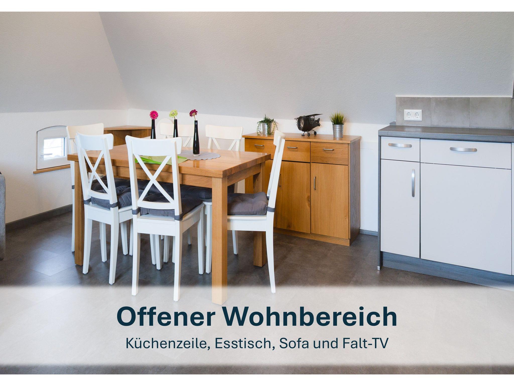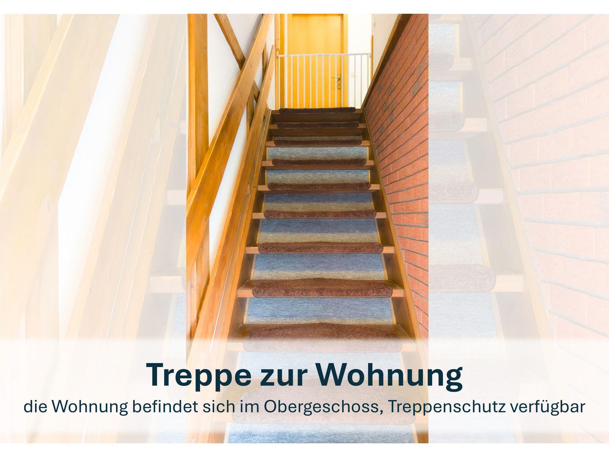 Die 60m² große Ferienwohnung ist ein wahres Highlight. Sie strahlt in hellem Licht und bietet Ihnen einen einladenden Wohn-/Essbereich, der perfekt für gesellige Stunden ist. Über die Treppe, die am oberen Ende über ein Treppenschutzgitter für die kleinen Gäste verfügt, gelangen Sie in die Wohnung.