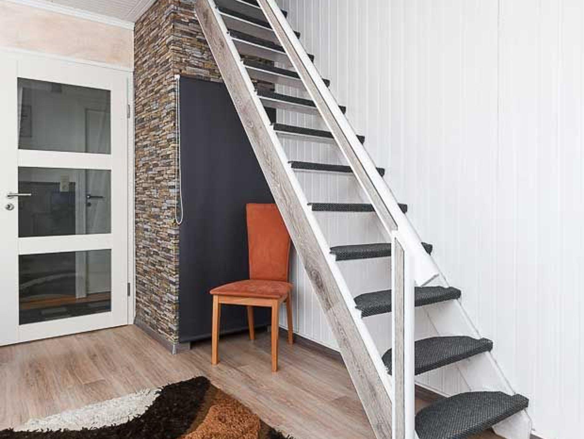 Größe ca. 45 Quadratmeter, Wohnzimmer mit integrierter Küche, Schlafzimmer, Badezimmer mit Dusche, Waschtisch und WC, Obergeschoss, Balkon, optimal für 1 bis 2 Personen und zusätzlich ein Kleinkind.