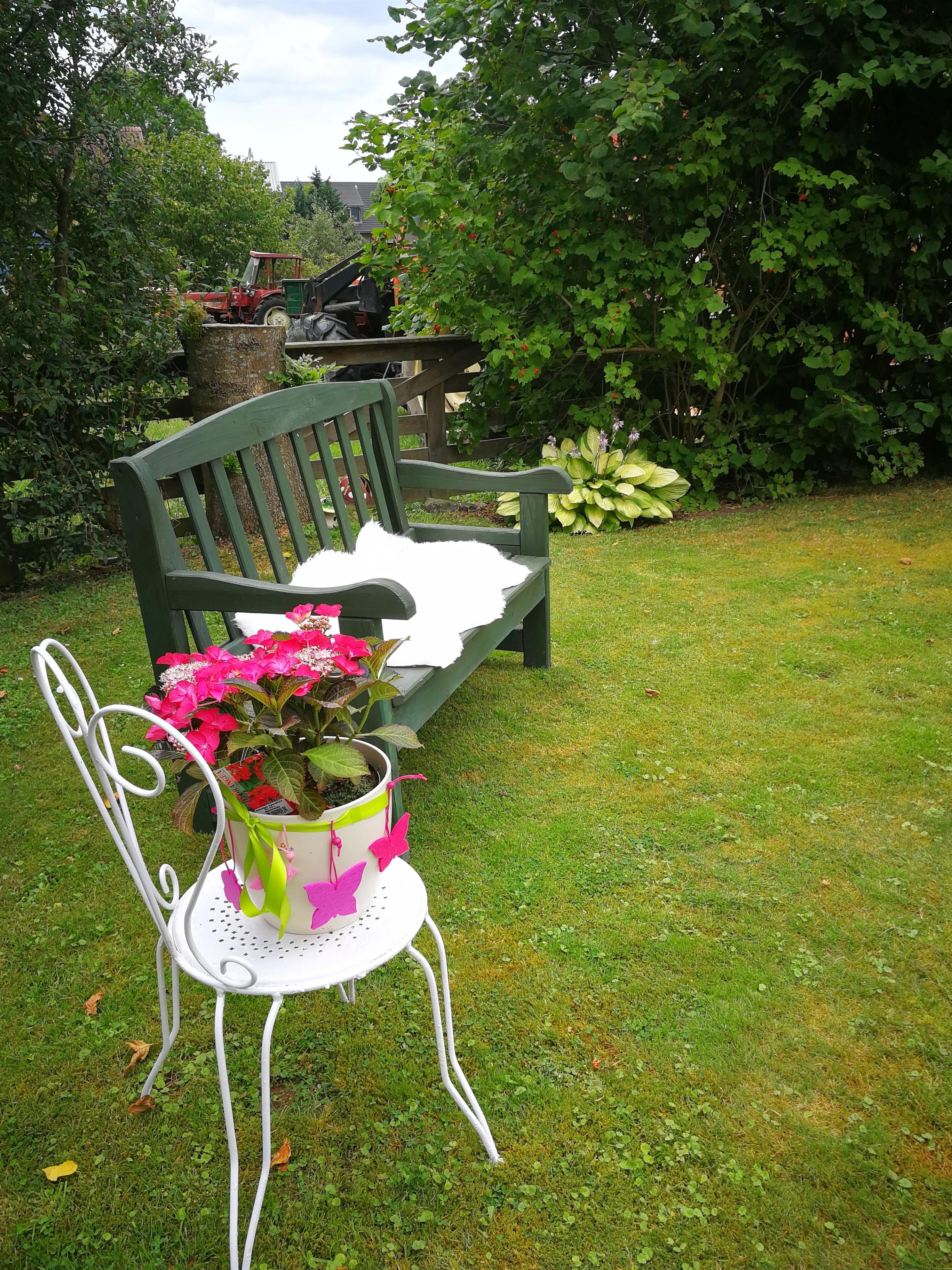 Platz findet ihr auch im großen Garten mit Klönschnackbank, Liegewiese und Gartenmöbeln zum relaxen.