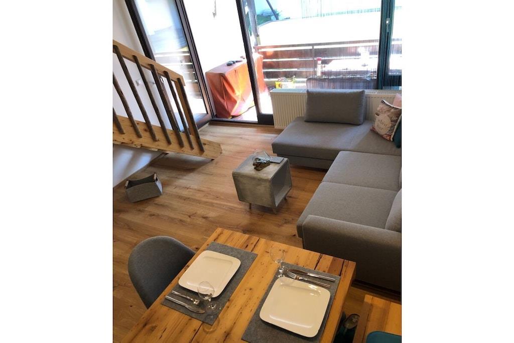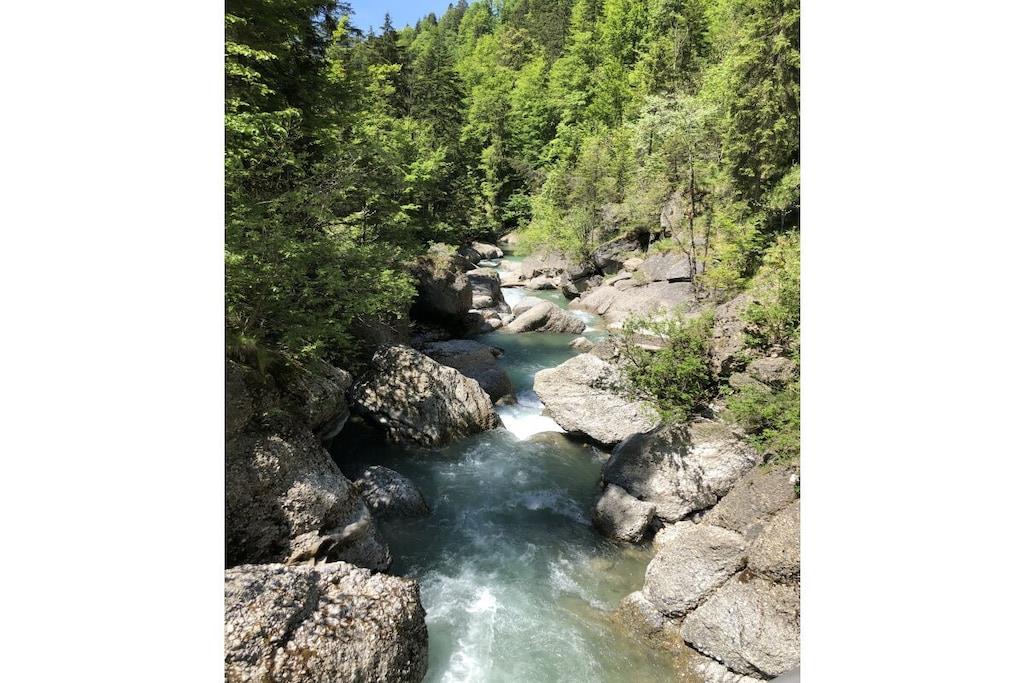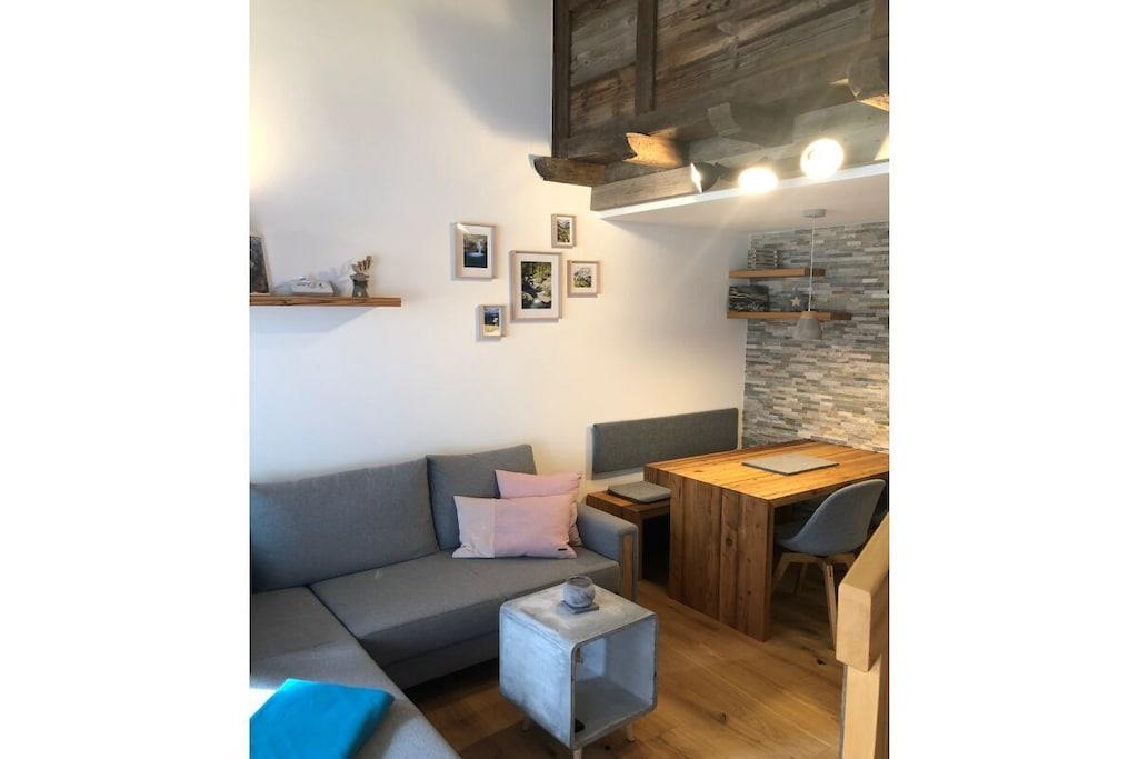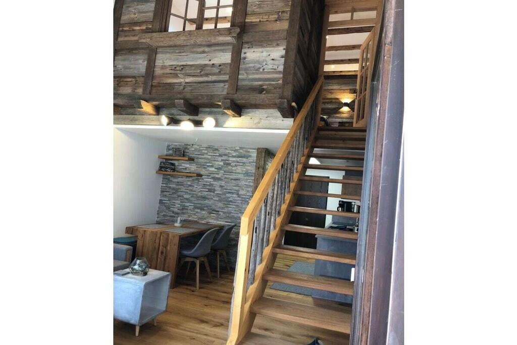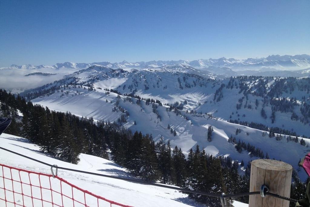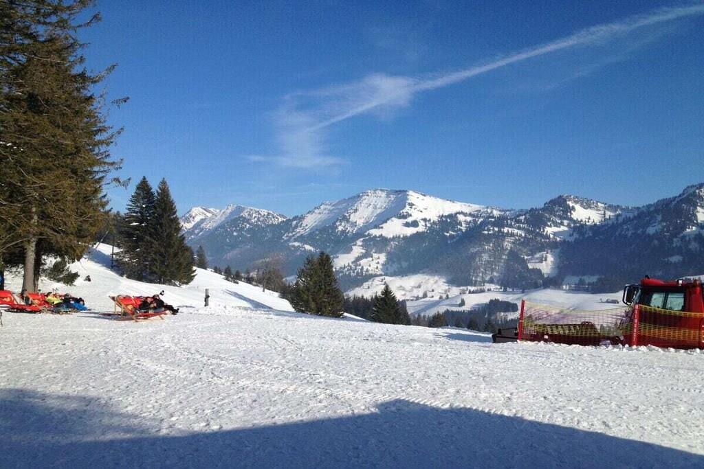 Vores nyrenoverede (2019) lejlighed i alpestil med masser af massivt/gammelt træ og natursten ligger i Alpen Appartementhaus, ved afkørslen fra Steibis mod Hochgrat/Imbergbahn. Kun 150 m fra kirkens skråning med en feederlift til Imbergbahn og 50 m fra det næste busstoppested. Som navnet antyder, er her simpelthen smukt, for uanset om I er sammen med familie, venner eller sammen, kan I slappe af her. Lejligheden ligger væk fra gaden mod den indre gårdhave, hvorfra du kan starte dine vandreture eller besøge legepladsen (lige ved siden af lejlighedshuset) uden at gå på gaden.