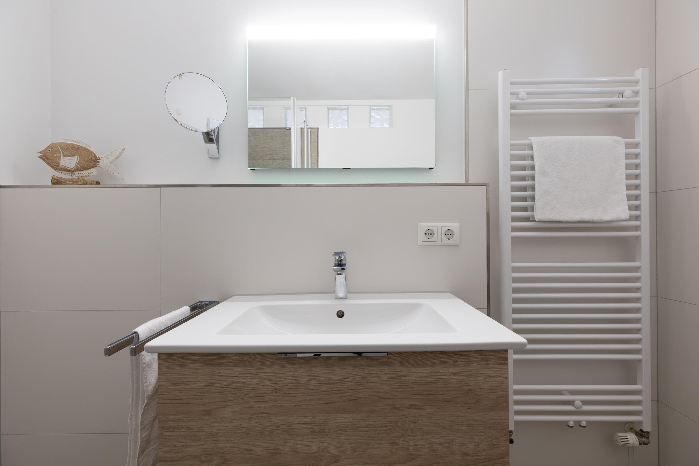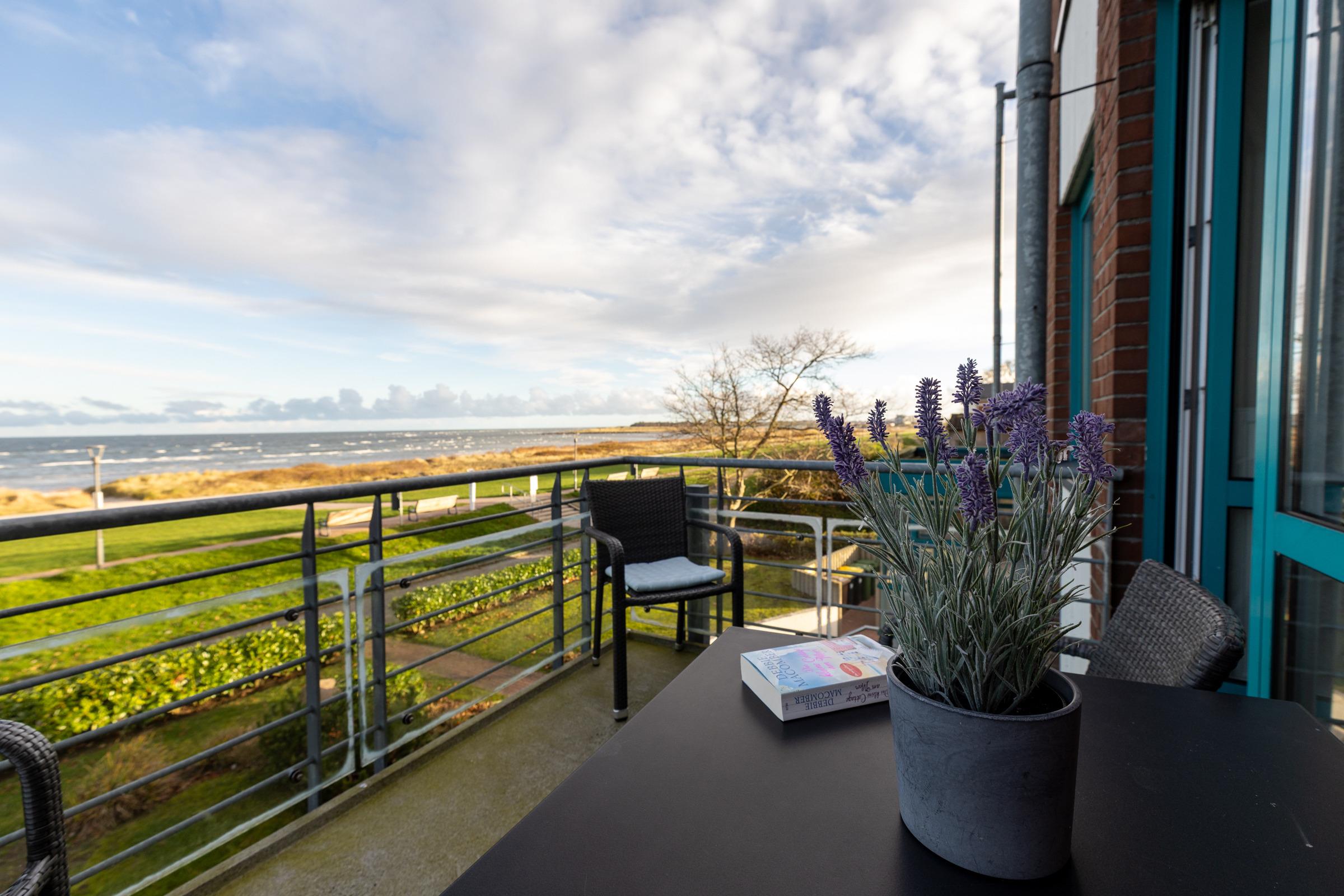 Die Sofaecke lädt in der kühleren Jahreszeit zum Relaxen ein. Erleben und genießen Sie auch von hier die nordische Landschaft, die sich brechenden Wellen, die Möwen am Himmel, vielleicht mit einem guten Buch und einem guten Tropfen. Vom Balkon aus können Sie links in Richtung Kieler Förde und rechts auf die freie Ostsee schauen. Das separate Schlafzimmer ist mit einem Doppelbett ausgestattet. Ihre Garderobe findet Platz im dreiteiligen Kleiderschrank. Ein helles Bad lädt gerade nach Strandspaziergängen zum entspannten Aufwärmen ein.