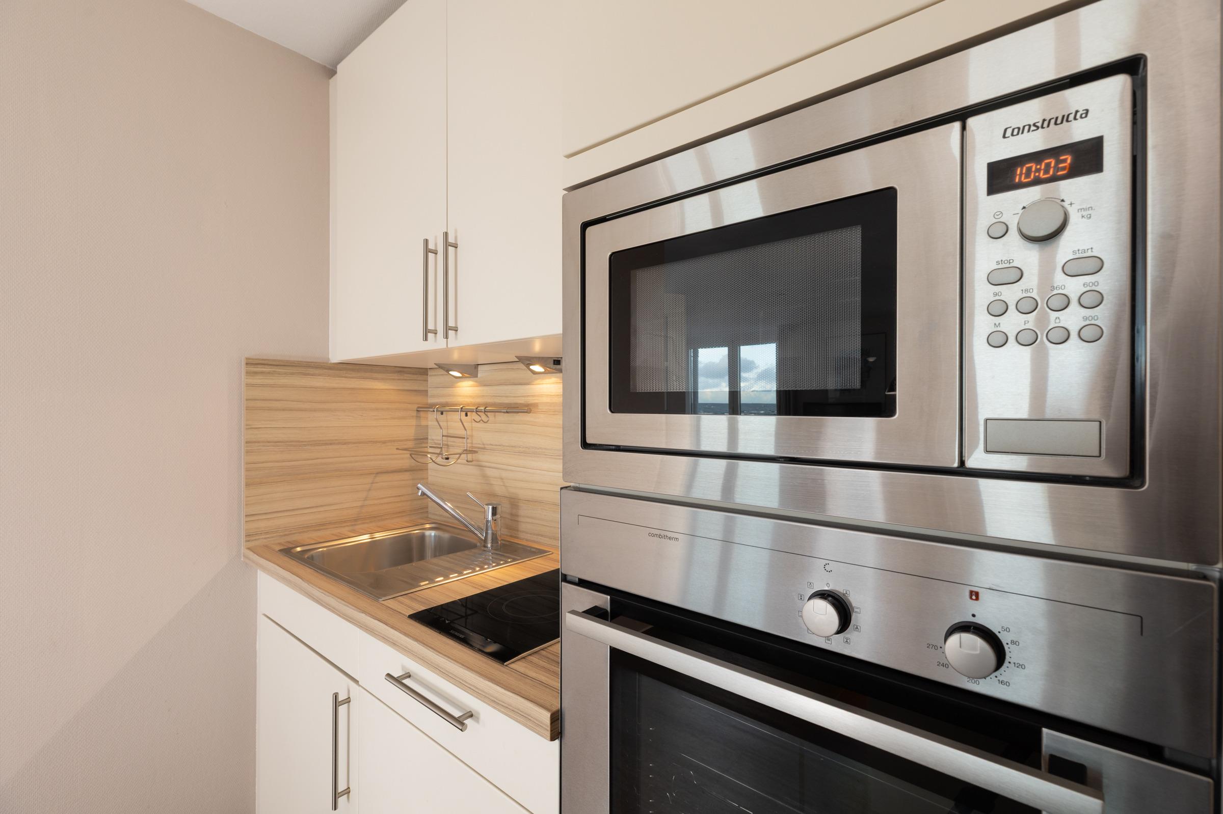 Vom Flur aus gelangen Sie in das mit warmen Farben ausgestattete Wohnzimmer mit moderner und gepflegter Küchenzeile. Diese wird geschmackvoll durch einen Tresen vom Wohnzimmer separiert. Der TV empfängt nur über DVBT-2 HD (öffentlich-rechtliche + private Programme in HD). Der Essplatz befindet sich praktischerweise nahe der Küche und bereits von hier aus genießen Sie den freien Blick auf die typische Dünenlandschaft und das Meer.