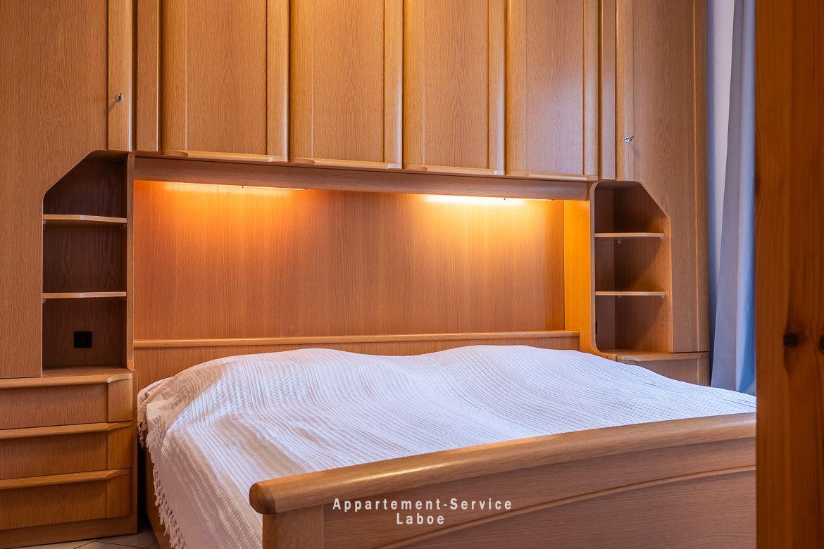 Das Apartment bietet auf 40 Quadratmetern Platz für bis zu vier Personen. Es ist einfach, aber gepflegt eingerichtet – der eigentliche Luxus liegt hier draußen: die Nähe zum Wasser und der Ostseeblick, den du, dank der bodentiefen Fenster, sogar direkt vom Bett im Schlafzimmer genießen kannst.