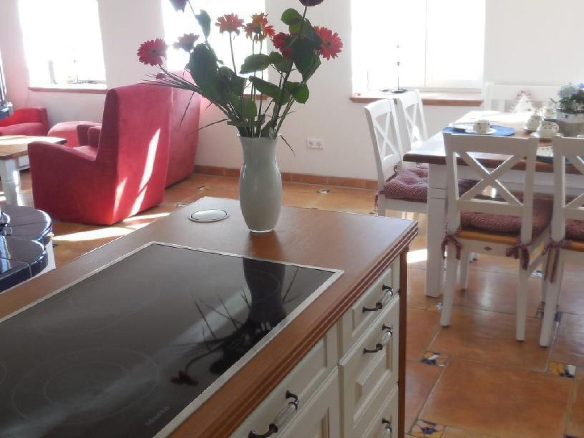 The interior of the villa leaves nothing to be desired. A spacious eat-in kitchen, several flat-screen TVs and beds that guarantee a dreamy night's sleep ensure your well-being. The living and sleeping areas are spread over two levels and, together with the open-plan kitchen/living room and a tiled stove, form a spacious unit full of elegance and a touch of romance. Feel welcome with cosy bathrobes, comfortable flip-flops, fresh fruit and a bottle of sparkling wine on your arrival.