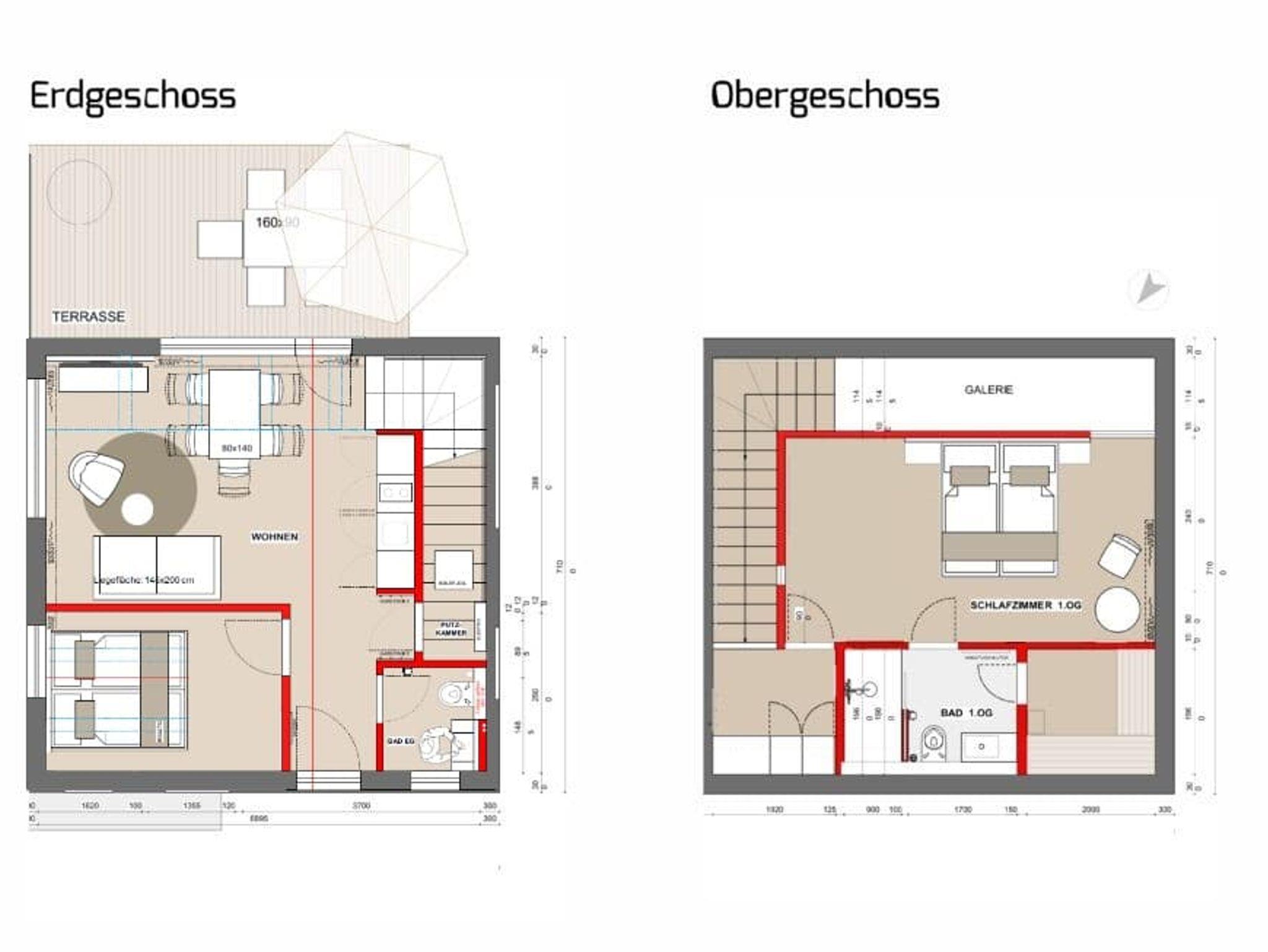 2 Schlafzimmer (1 Doppelbett / 2 Einzelbetten)