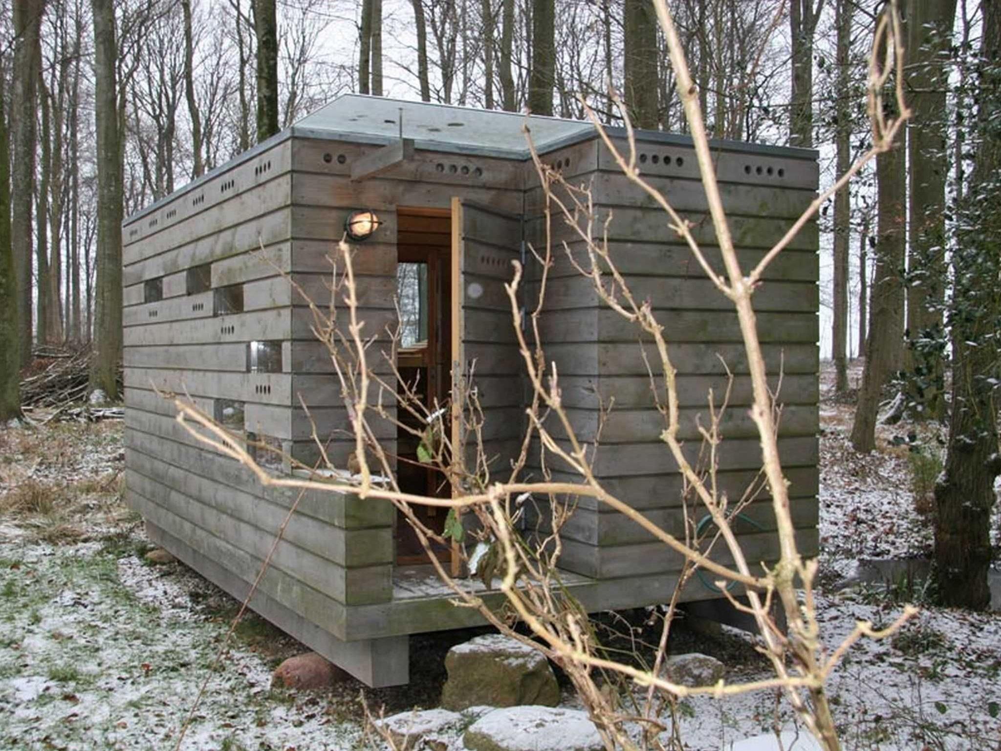 - 30 Meter entfernt: Waldsauna mit Meerblick durch Baumstämme