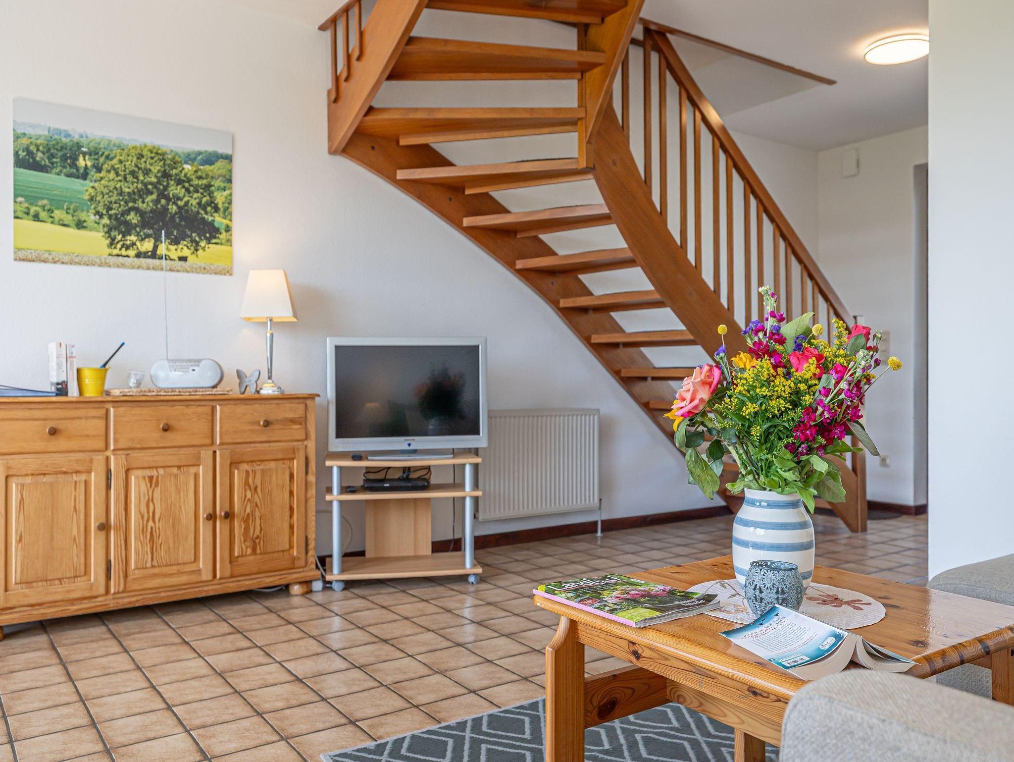 In einer der fünf schöne Ferienwohnungen im Reihenhaus wohnen hinter dem eingerückten Rosenwall an der Dorfstraße nur unweit vom Meer entfernt. Die Ferienwohnung Möwe für bis zu 4 Personen (plus 1 Kleinkind) bietet viel Raum zum Wohlfühlen und Entspannen.