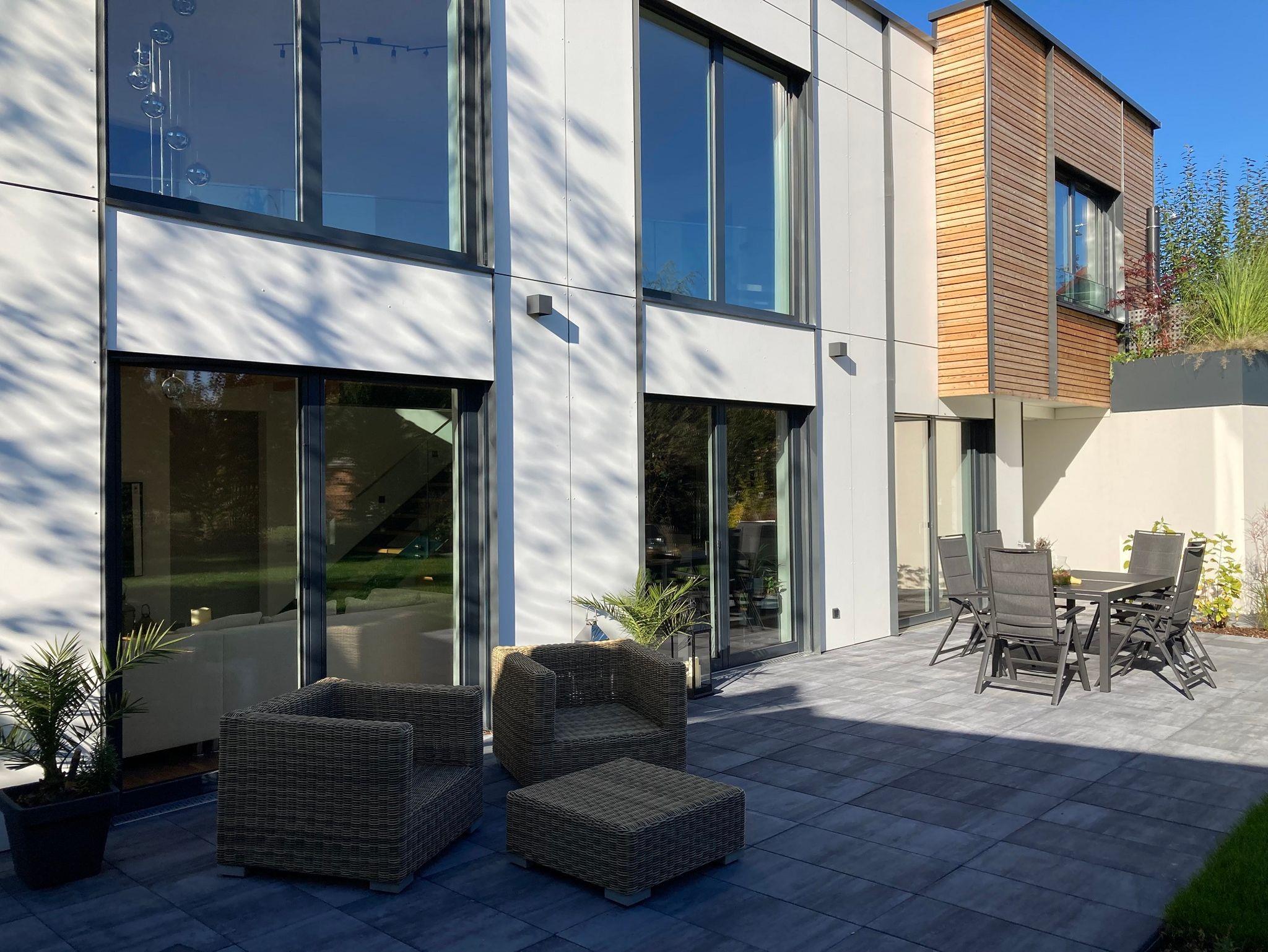 Das neu erbaute exklusive Architektenhaus mit Dachbegrünung ist errichtet mit nachhaltigen, biologischen Baustoffen,