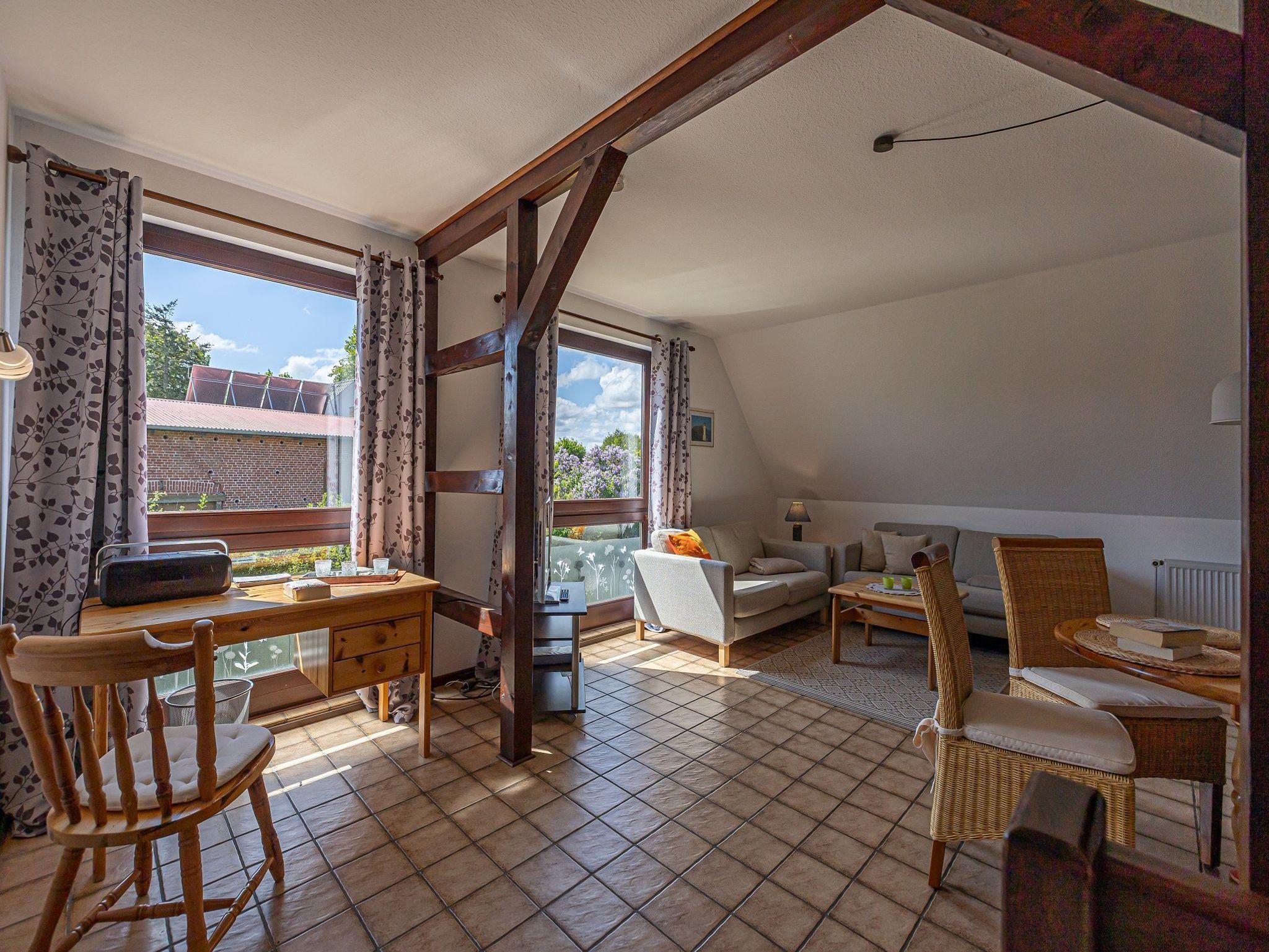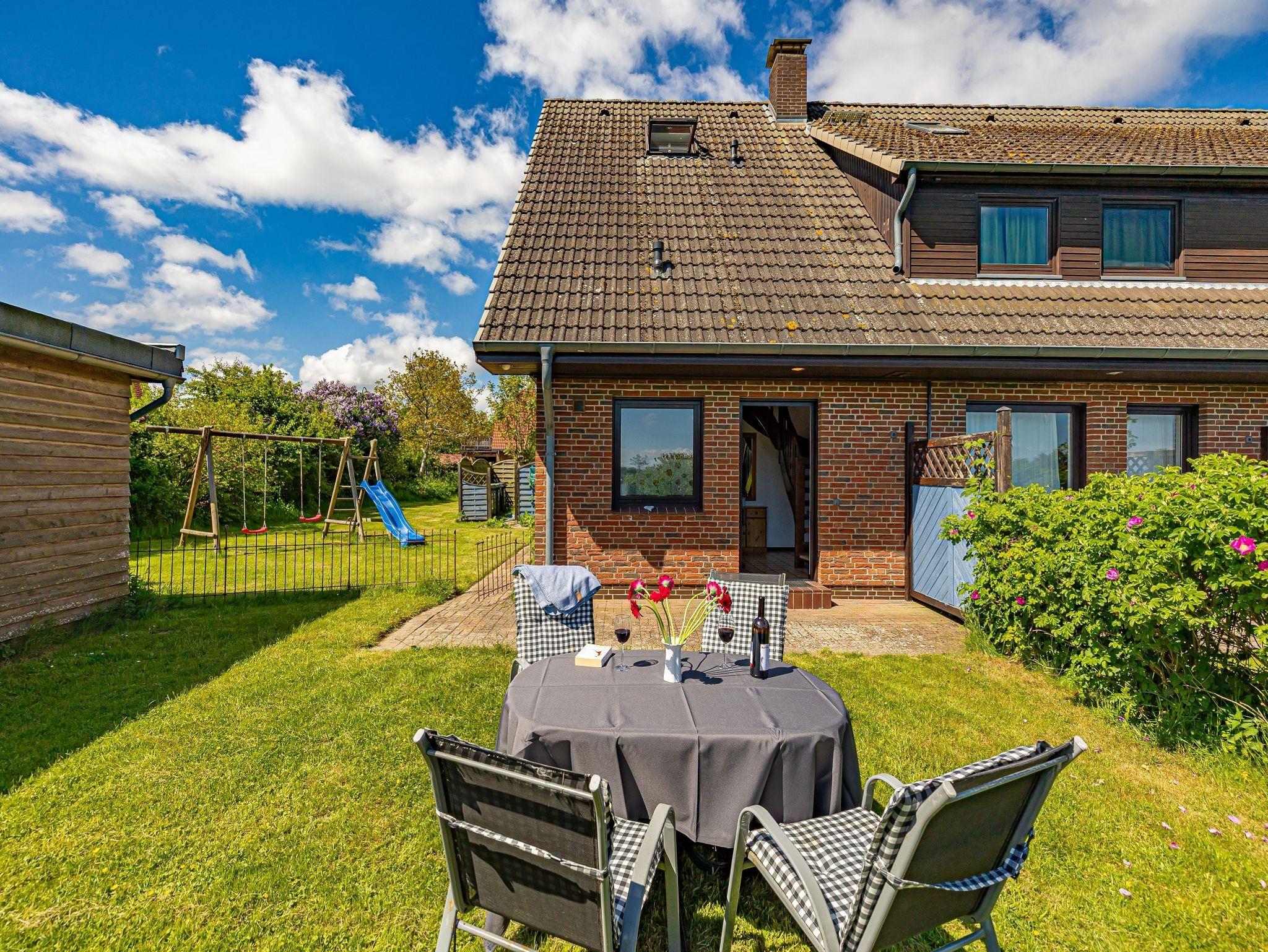 Die hübsche Ferienwohnung Uferschwalbe ist die letzte Wohnung im Reihenhaus. Sie hat jedoch ihren Eingang hinter dem Haus, dort wo auch Ihre Terrasse ist.