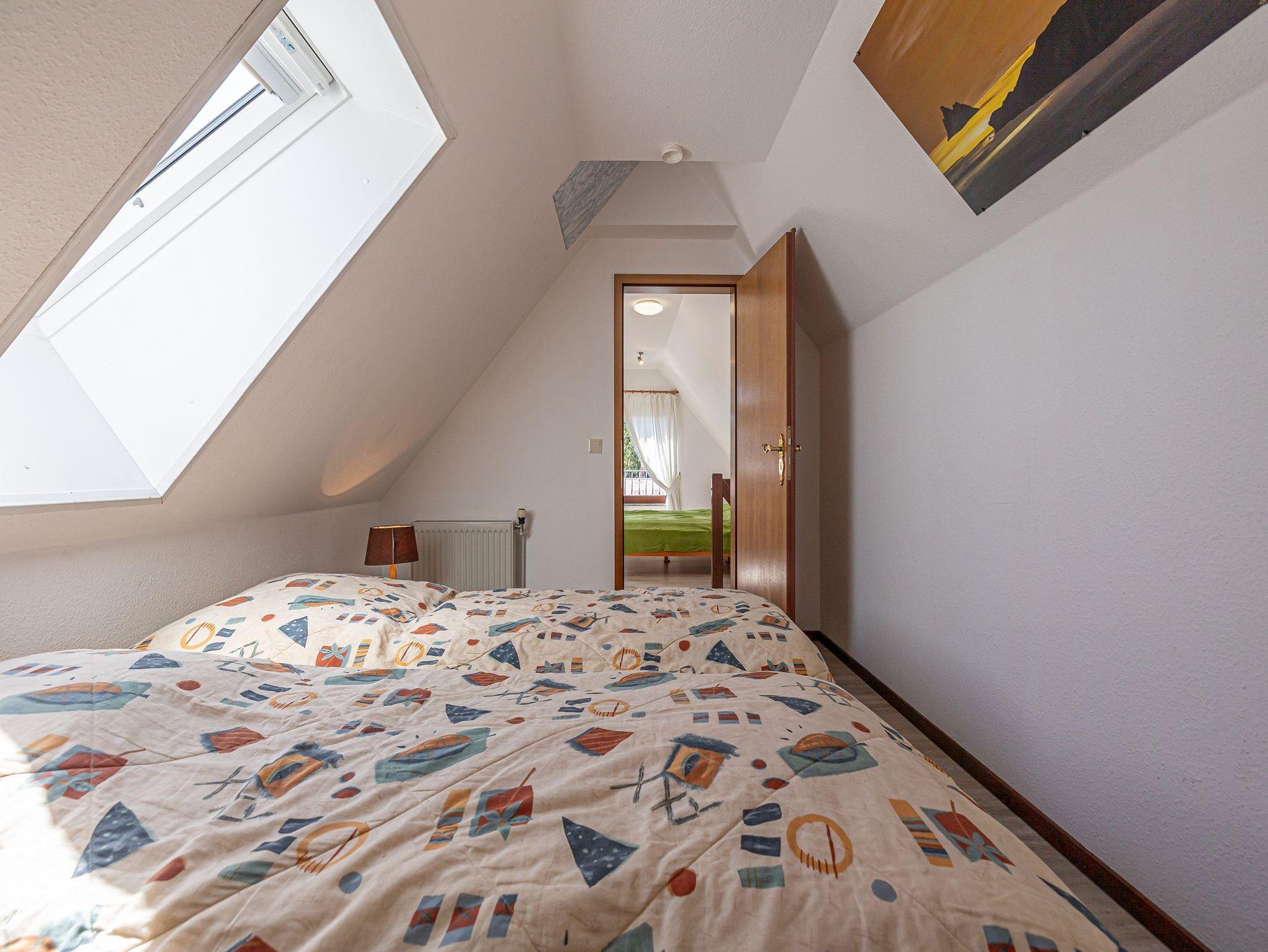 Steigen Sie nun noch weiter nach oben über eine steile Treppe und gelangen Sie in ein großzügiges Schlafzimmer welches offen zur Treppe liegt. Durch eine angrenzende Tür gelangen Sie in ein weiteres großes Schlafzimmer. In beiden sind Doppelbetten und der Ausblick auf die Ostsee ist garantiert.