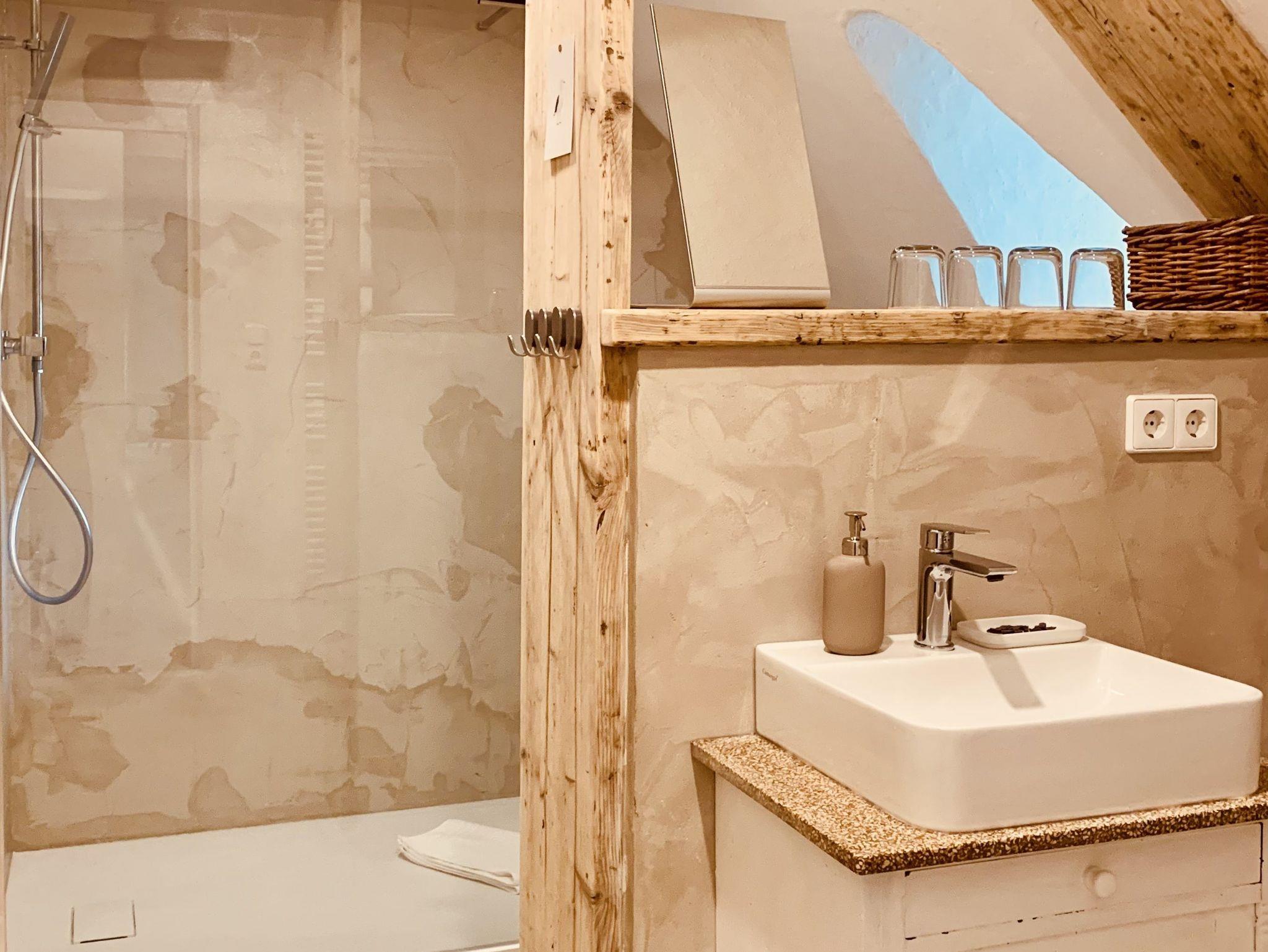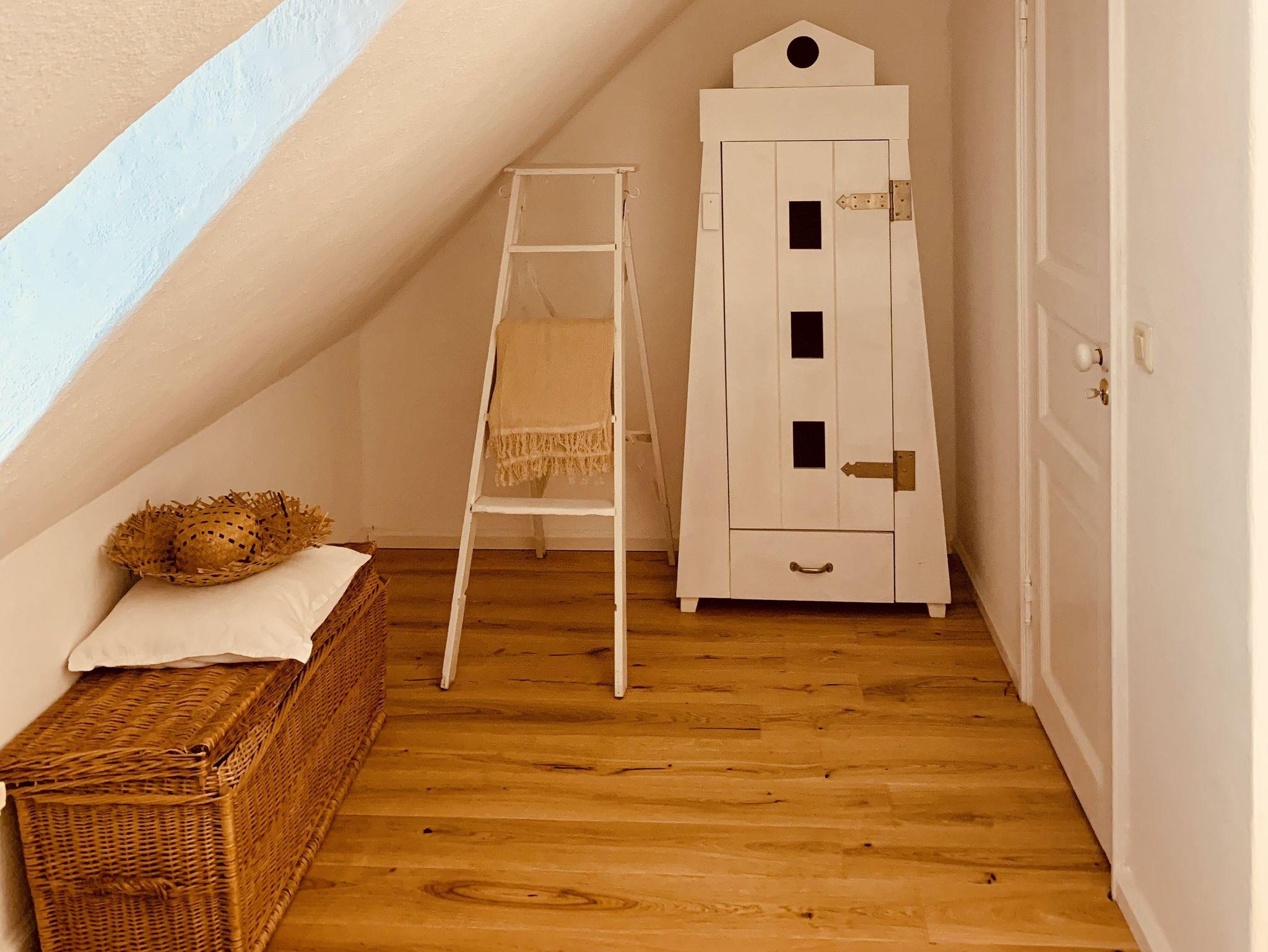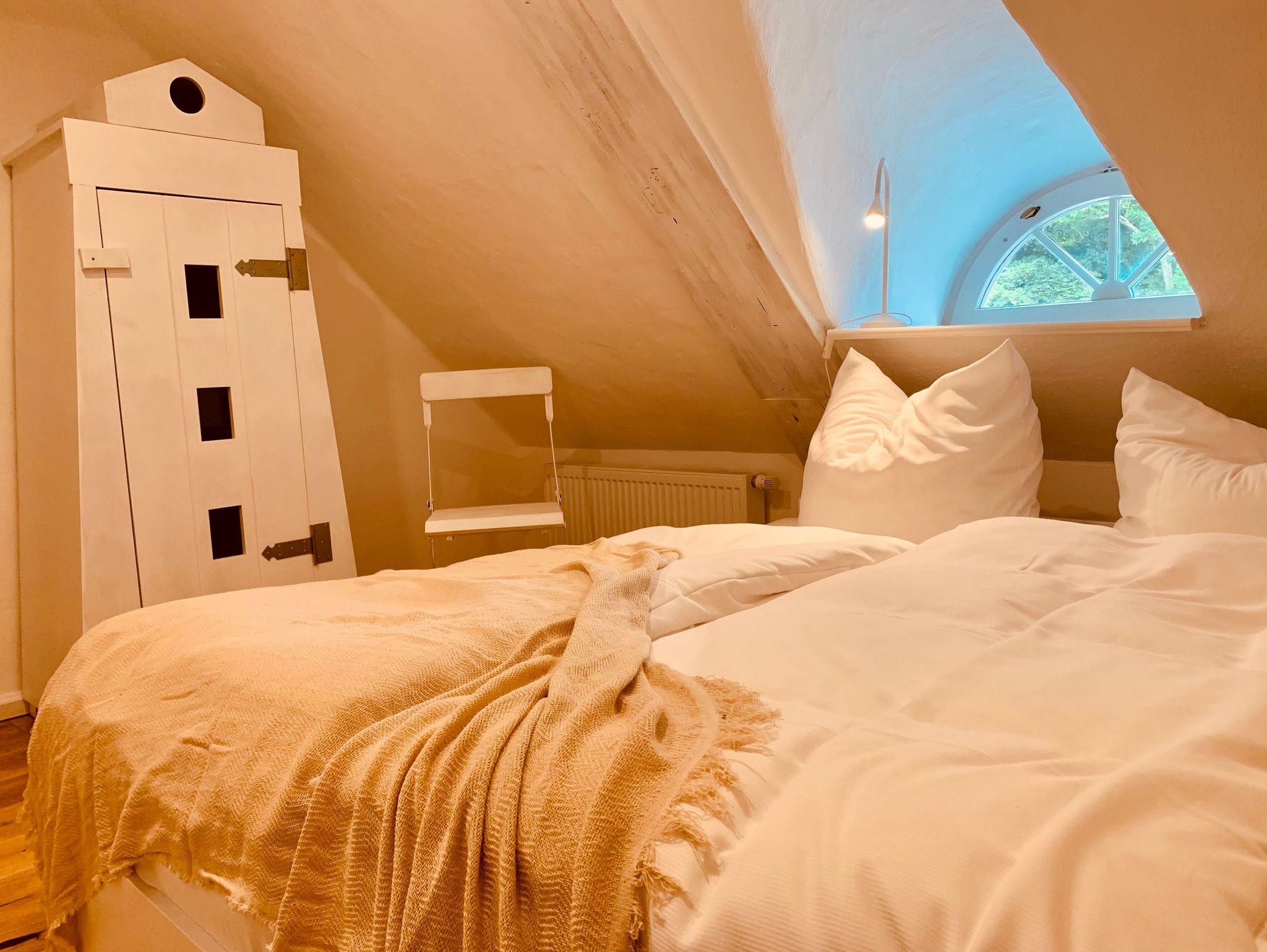Die Ferienwohnung Söss befindet sich im Obergeschoss des Anbaus am Hauptgebäude und ist liebevoll in einem individuellen MIx aus Modern und Antik gestaltet.