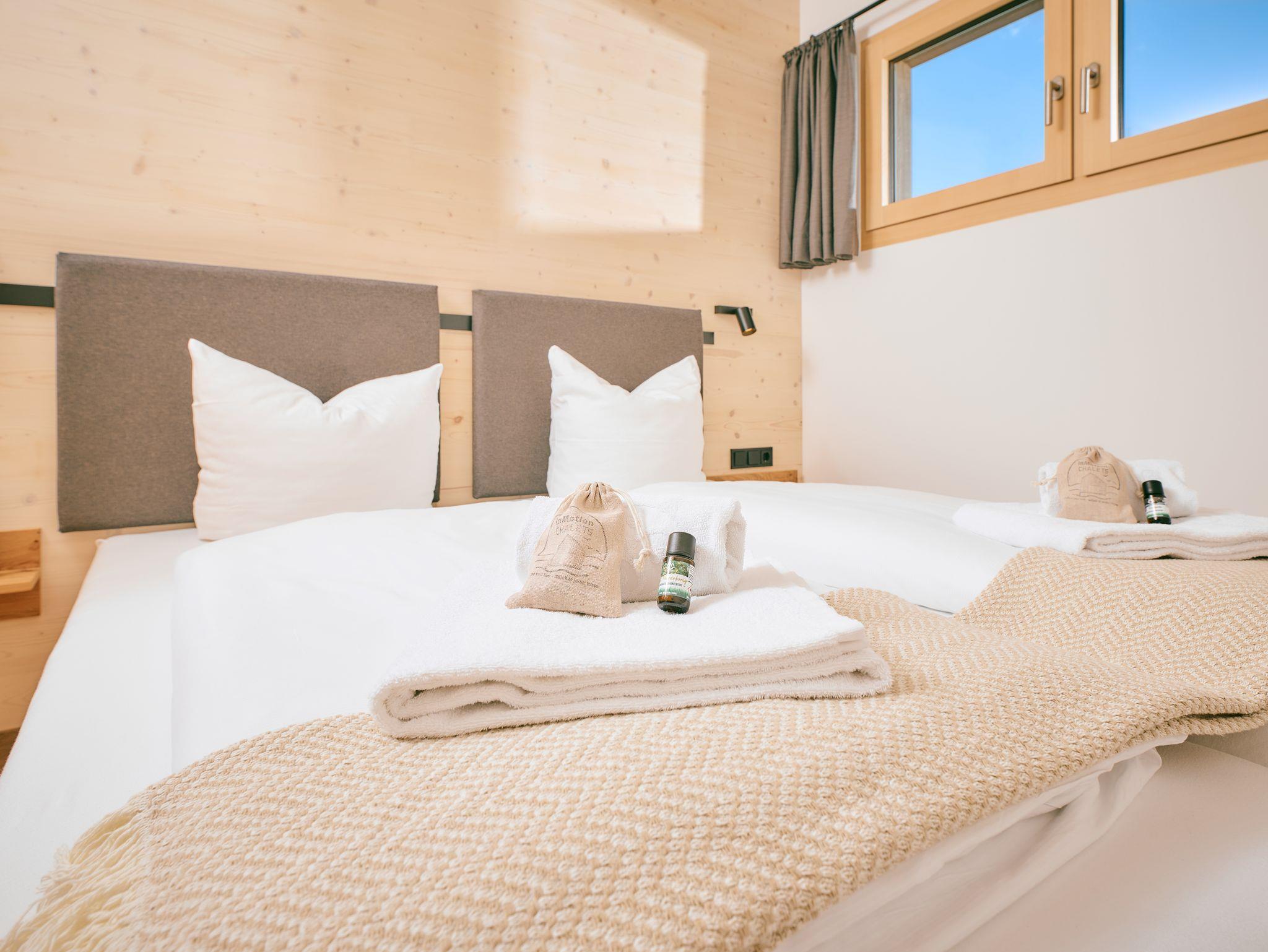 In unseren Relaxchalets haben vier Personen bequem Platz. Auf 55 qm Wohnfläche lasst Ihr es Euch gut gehen und entspannt im überdachten Wellnessbereich mit eigener Sauna, Ruheraum und privatem Whirlpool. Gebaut wurde dieses Chalet, wie alle unsere Kategorien, unter Nutzung nachhaltiger Baustoffe und in einer ressourcenschonenden Bauweise.