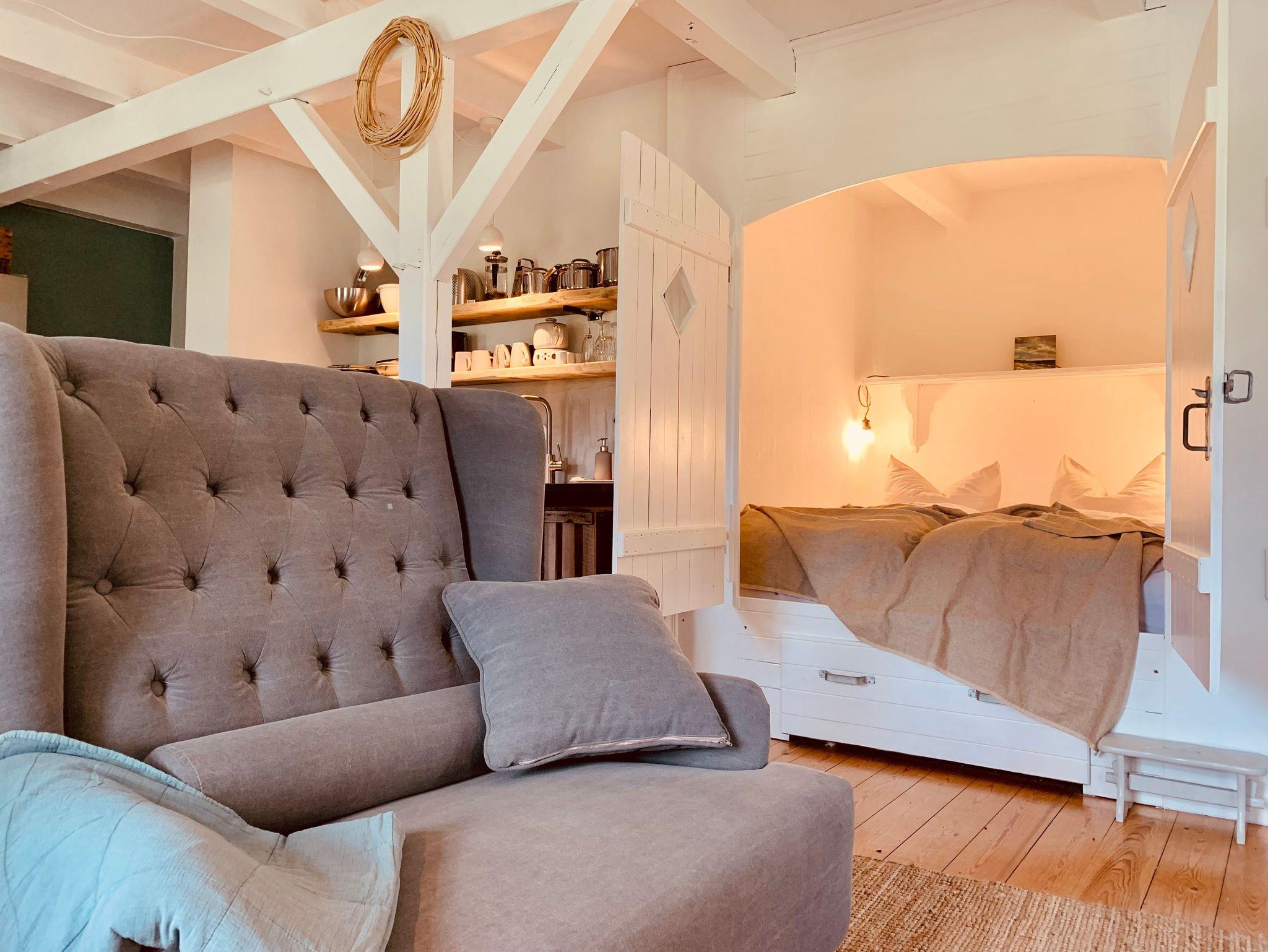 Die Ferienwohnung Dree befindet sich im Erdgeschoss der ausgbauten Scheune und ist liebevoll in einem individuellen MIx aus Modern und Antik gestaltet.